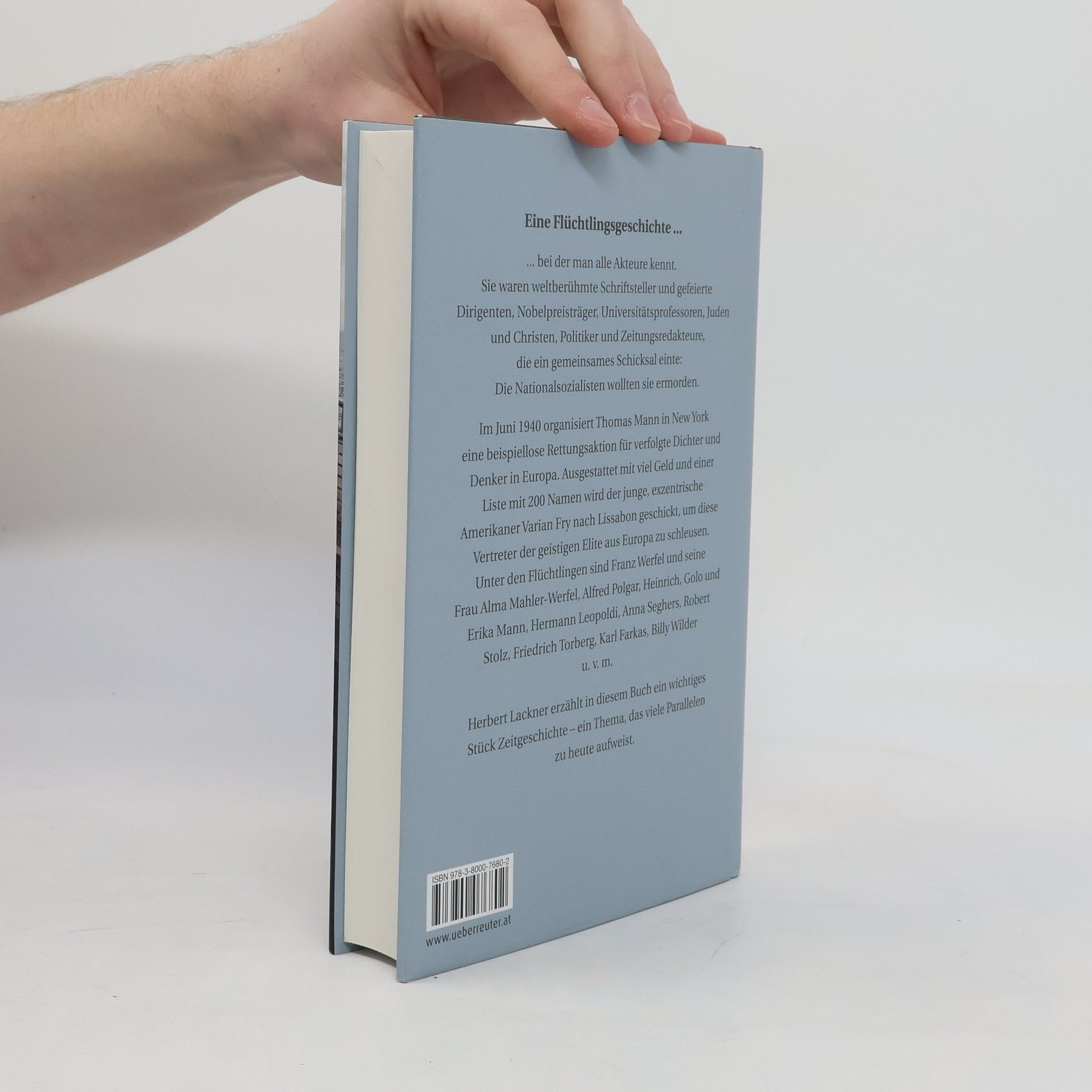 Eine Flüchtlingsgeschichte ... ... bei der man alle Akteure kennt. Sie waren weltberühmte Schriftsteller und gefeierte Dirigenten, Nobelpreisträger, Universitätsprofessoren, Juden und Christen, Politiker und Zeitungsredakteure, die ein gemeinsames Schicksal einte: Die Nationalsozialisten wollten sie ermorden. Im Juni 1940 organisiert Thomas Mann in New York eine beispiellose Rettungsaktion für verfolgte Dichter und Denker in Europa. Ausgestattet mit viel Geld und einer Liste mit 200 Namen wird der junge, exzentrische Amerikaner Varian Fry nach Lissabon geschickt, um diese Vertreter der geistigen Elite aus Europa zu schleusen. Unter den Flüchtlingen sind Franz Werfel und seine Frau Alma Mahler-Werfel, Alfred Polgar, Heinrich, Golo und Erika Mann, Hermann Leopoldi, Anna Seghers, Robert Stolz, Friedrich Torberg, Karl Farkas, Billy Wilder u. v. m. Herbert Lackner erzählt in diesem Buch ein wichtiges Stück Zeitgeschichte – ein Thema, das viele Parallelen zu heute aufweist.