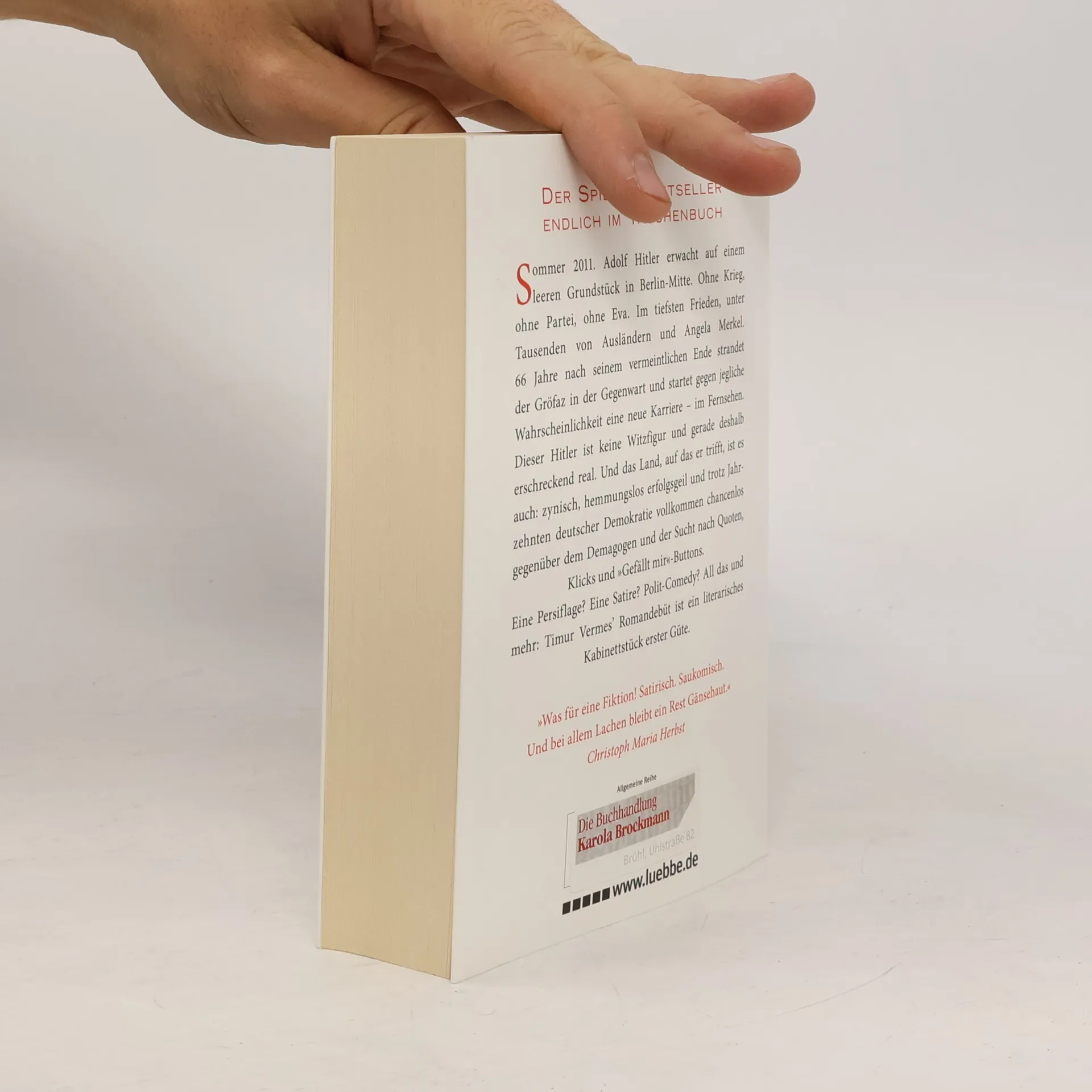 Sommer 2011. Adolf Hitler erwacht auf einem leeren Grundstück in Berlin-Mitte. Ohne Krieg, ohne Partei, ohne Eva, dafür unter Tausenden von Ausländern und Angela Merkel. 66 Jahre nach seinem vermeintlichen Ende startet er gegen jegliche Wahrscheinlichkeit eine neue Karriere im Fernsehen. Dieser Hitler ist keine Witzfigur, sondern erschreckend real. Und das Land, auf das er trifft, ist es auch: zynisch, hemmungslos erfolgsgeil und vollkommen chancenlos gegenüber dem Demagogen und der Sucht nach Quoten, Klicks und »Gefällt mir!«-Buttons. Eine Persiflage? Eine Satire? Polit-Comedy? All das und mehr: Dieser Roman ist ein literarisches Kabinettstück erster Güte.