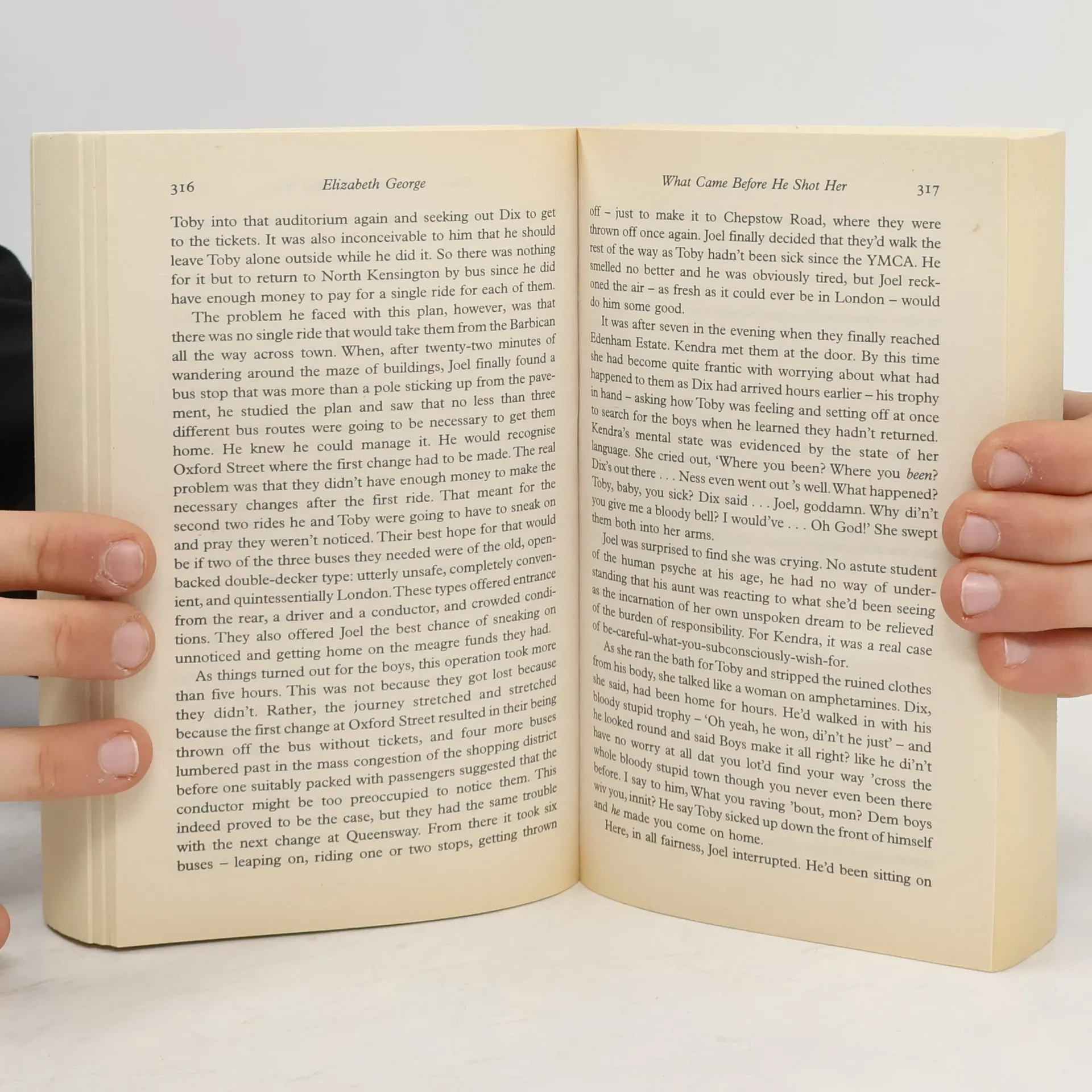 The shocking conclusion of Elizabeth George's previous bestseller, WITH NO ONE AS WITNESS, saw the wife of New Scotland Yard's Thomas Lynley gunned down in the street outside her home. Under arrest for the crime is a twelve-year-old boy, Joel Campbell. What possible motive could he have? What chain of events could have led such a child from the housing estates of North Kensington to the elegant streets of Belgravia with such deadly intent? The answer to these questions is a complex mixture of fate and circumstance. Abandoned (albeit involuntarily) by his parents, Joel and two siblings are dumped on the doorstep of his aunt's house. Kendra, childless and with two marriages behind her, is doing her best to turn her life around; responsibility for three troubled children is not what she had in mind. Drugs, neglect, violence and poverty are commonplace in North Kensington. Joel does his best to look out for his family, but that involves a Faustian pact. And the Devil will have his pay.