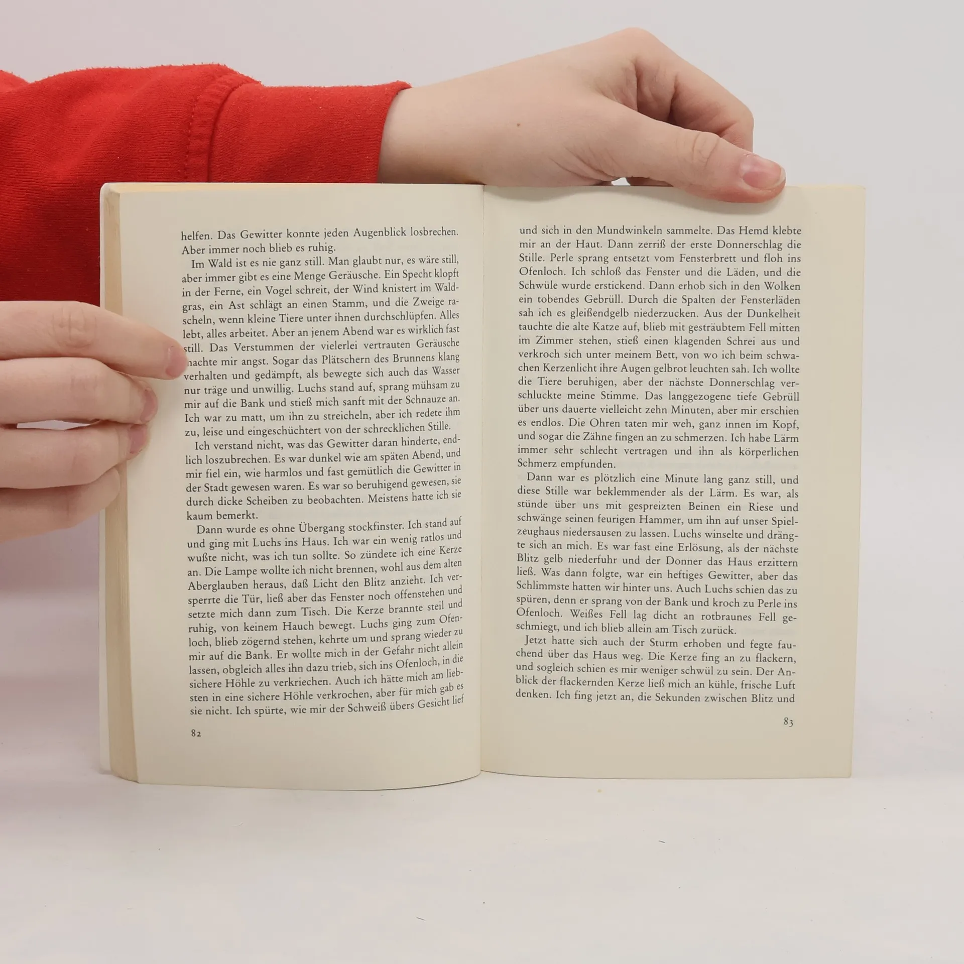 'Verdutzt streckte ich die Hand aus und berührte etwas Glattes und Kühles: einen glatten, kühlen Widerstand an einer Stelle, an der doch gar nichts sein konnte als Luft. Zögernd versuchte ich es noch einmal, und wieder ruhte meine Hand wie auf der Scheibe eines Fensters. Dann hörte ich lautes Pochen und sah um mich, ehe ich begriff, daß es mein eigener Herzschlag war, der mir in den Ohren dröhnte. Mein Herz hatte sich schon gefürchtet, ehe ich es wußte.'