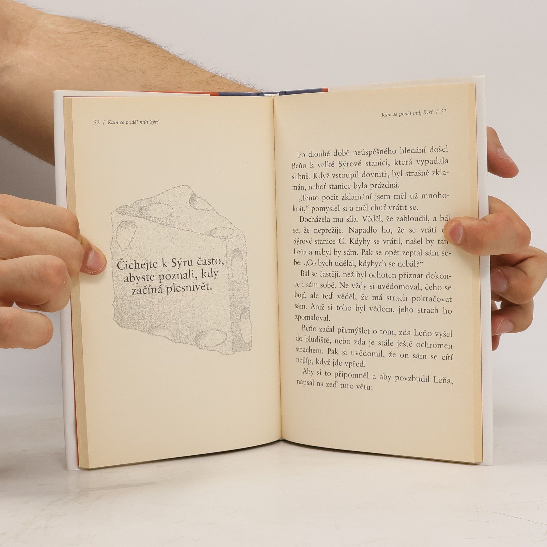 Jedná se o podobenství, které odhaluje hluboké pravdy o změně. Je to zábavný a poučný příběh o čtyřech zajímavých postavičkách, které žijí v „Bludišti“, kde hledají „Sýr“. Sýr je metaforou toho, co v životě chceme, ať už je to zaměstnání, partnerský vztah, peníze, dům, svoboda, dobré zdraví, společenské uznání nebo duševní vyrovnanost. Bludiště je místo, kde hledáme to, co chceme.
