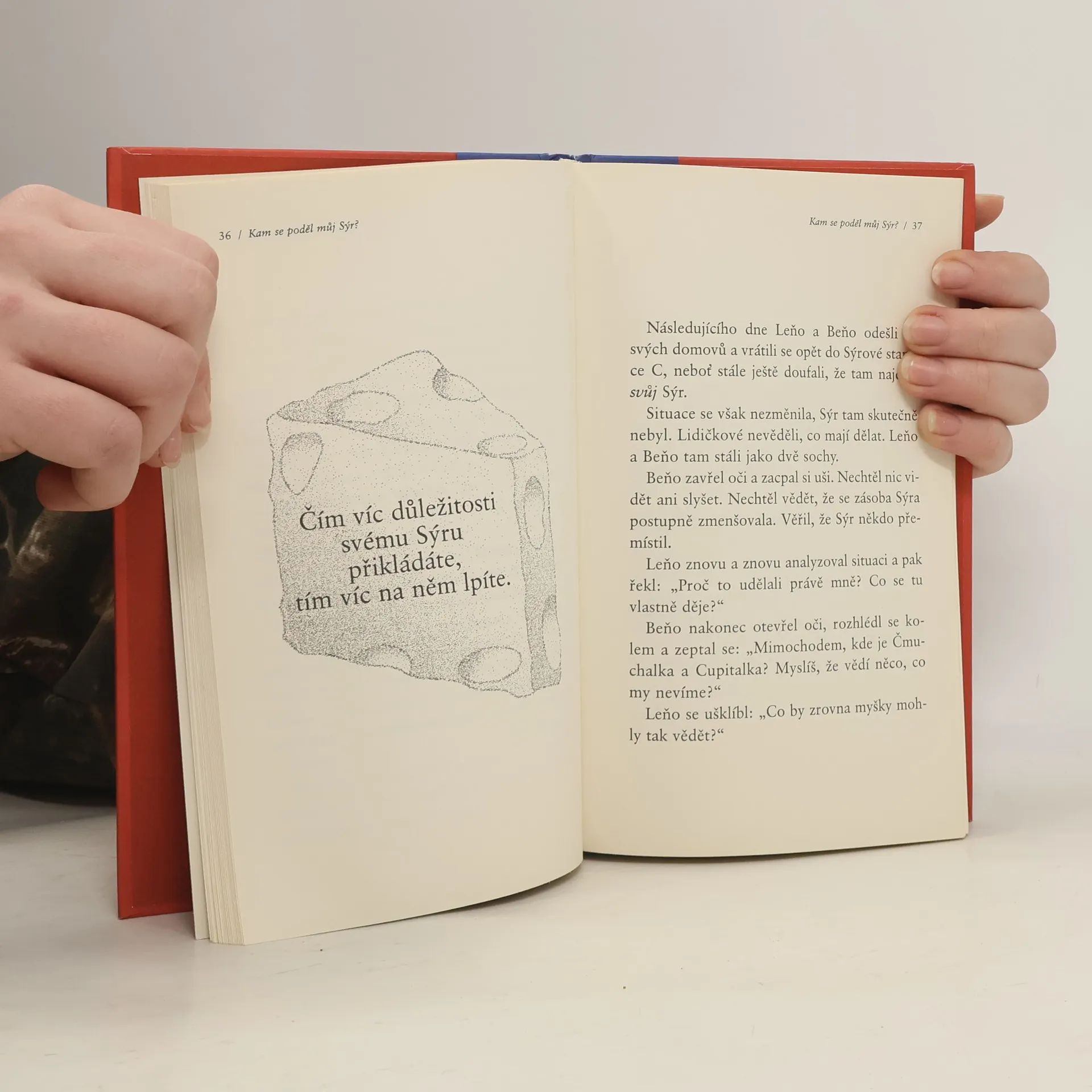 Jedná se o podobenství, které odhaluje hluboké pravdy o změně. Je to zábavný a poučný příběh o čtyřech zajímavých postavičkách, které žijí v „Bludišti“, kde hledají „Sýr“. Sýr je metaforou toho, co v životě chceme, ať už je to zaměstnání, partnerský vztah, peníze, dům, svoboda, dobré zdraví, společenské uznání nebo duševní vyrovnanost. Bludiště je místo, kde hledáme to, co chceme.