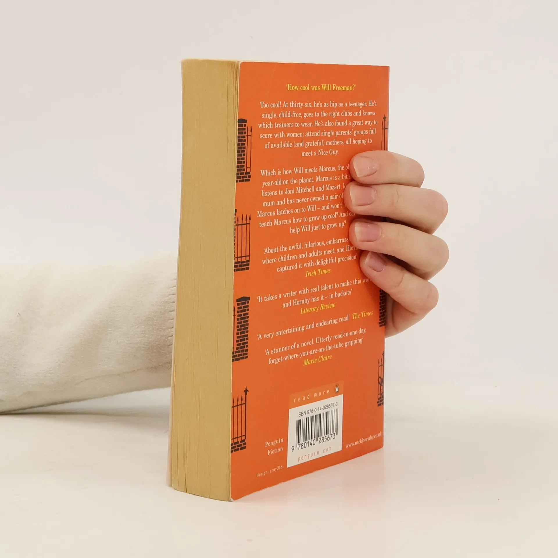'How cool was Will Freeman?' Too cool! At thirty-six, he's as hip as a teenager. He's single, child-free, goes to the right clubs and knows which trainers to wear. He's also found a great way to score with women: attend single parents' groups full of available (and grateful) mothers, all hoping to meet a Nice Guy. Which is how Will meets Marcus, the oldest twelve-year-old on the planet. Marcus is a bit strange: he listens to Joni Mitchell and Mozart, looks after his mum and has never owned a pair of trainers. But Marcus latches on to Will - and won't let go. Can Will teach Marcus how to grow up cool? And can Marcus help Will just to grow up?