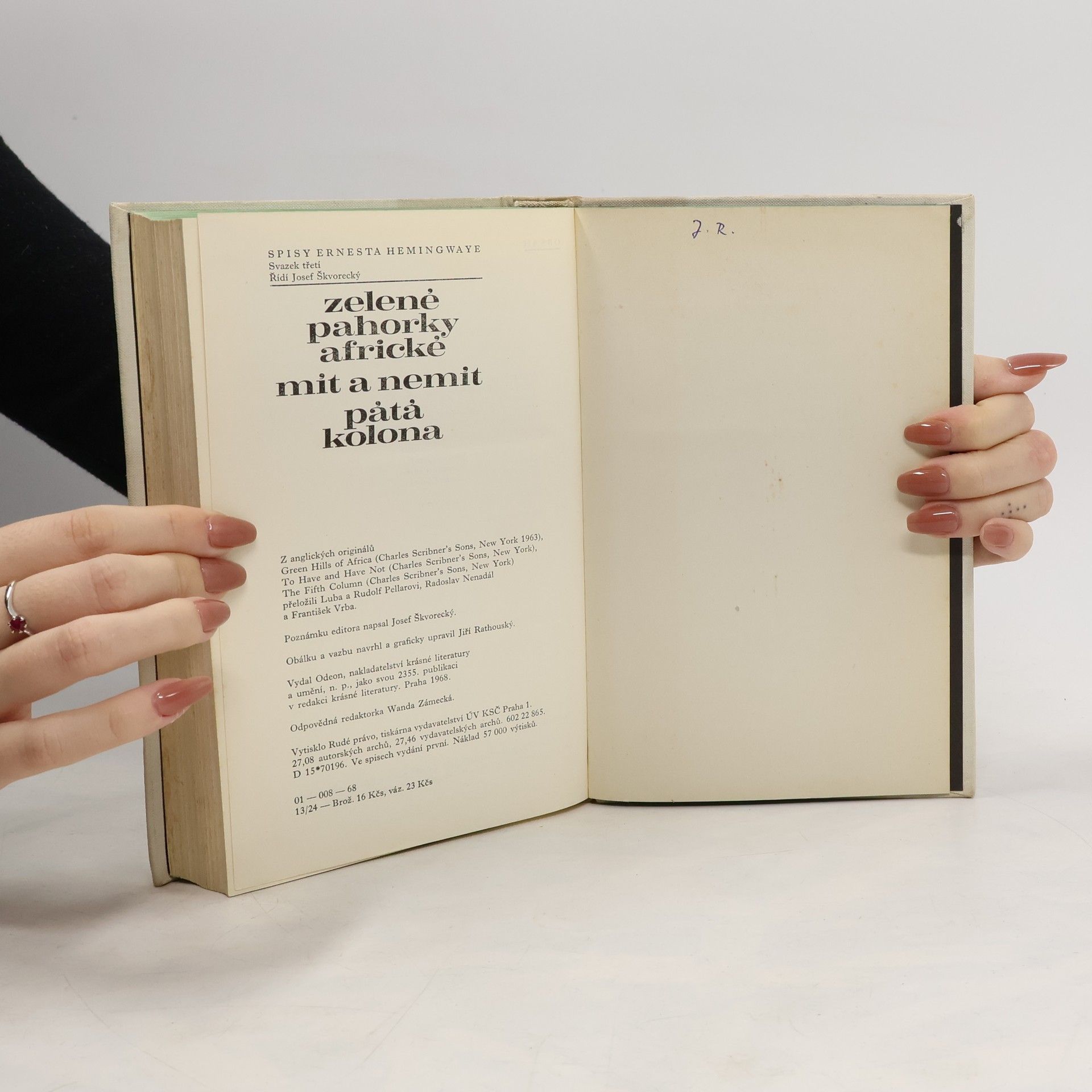 Zelené pahorky africké. Mít a nemít. Pátá kolona, Ernest Hemingway