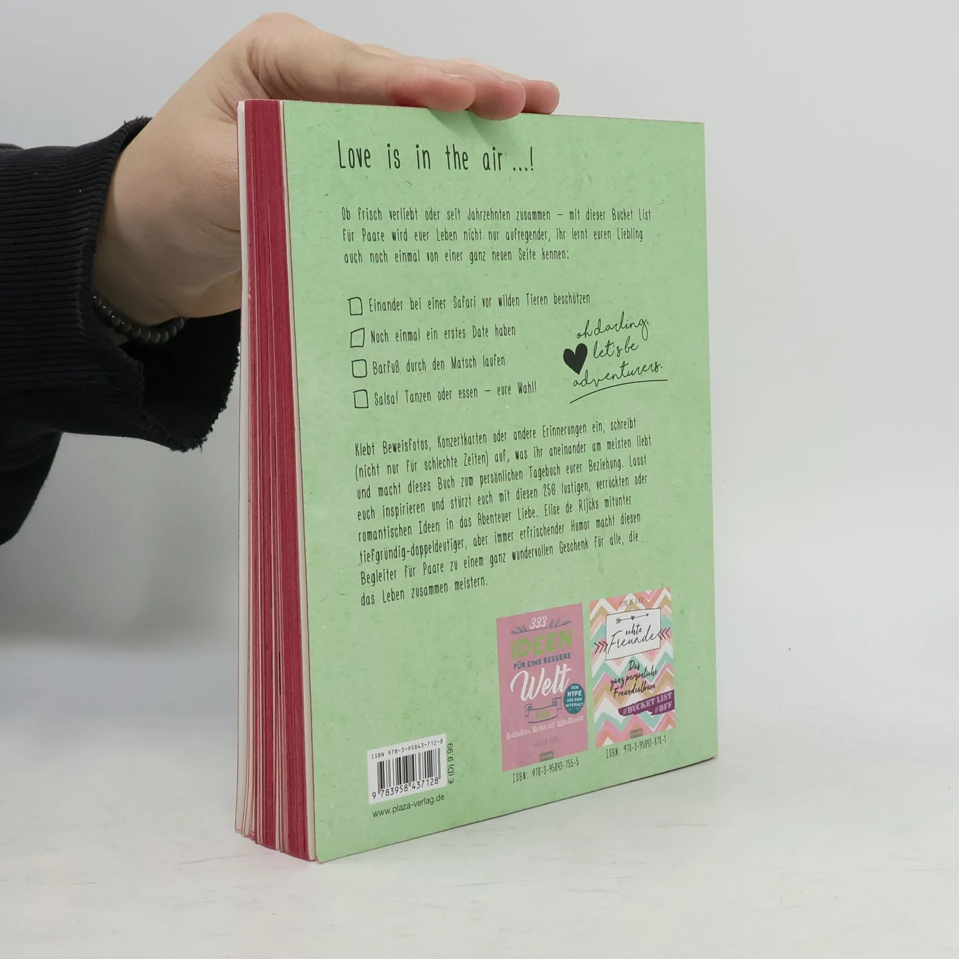 Spaghetti essen wie Susi und Strolch, nachts ans Meer fahren und gemeinsam die Sterne betrachten, Ihren Schatz bei einer Safari vor wilden Tieren beschützen -- ob frisch verliebt oder seit Jahrzehnten ein Paar, mit dieser Bucket List für Paare wird Ihr Leben nicht nur aufregender, Sie lernen Ihren Liebling auch noch einmal von einer ganz neuen Seite kennen. Schreiben Sie (nicht nur für schlechte Zeiten) auf, was Sie aneinander am meisten lieben und machen Sie dieses Buch zum persönlichen Tagebuch Ihrer Beziehung. Lassen Sie sich inspirieren und stürzen Sie sich mit diesen 250 lustigen, verrückten oder romantischen Ideen in das Abenteuer Liebe.