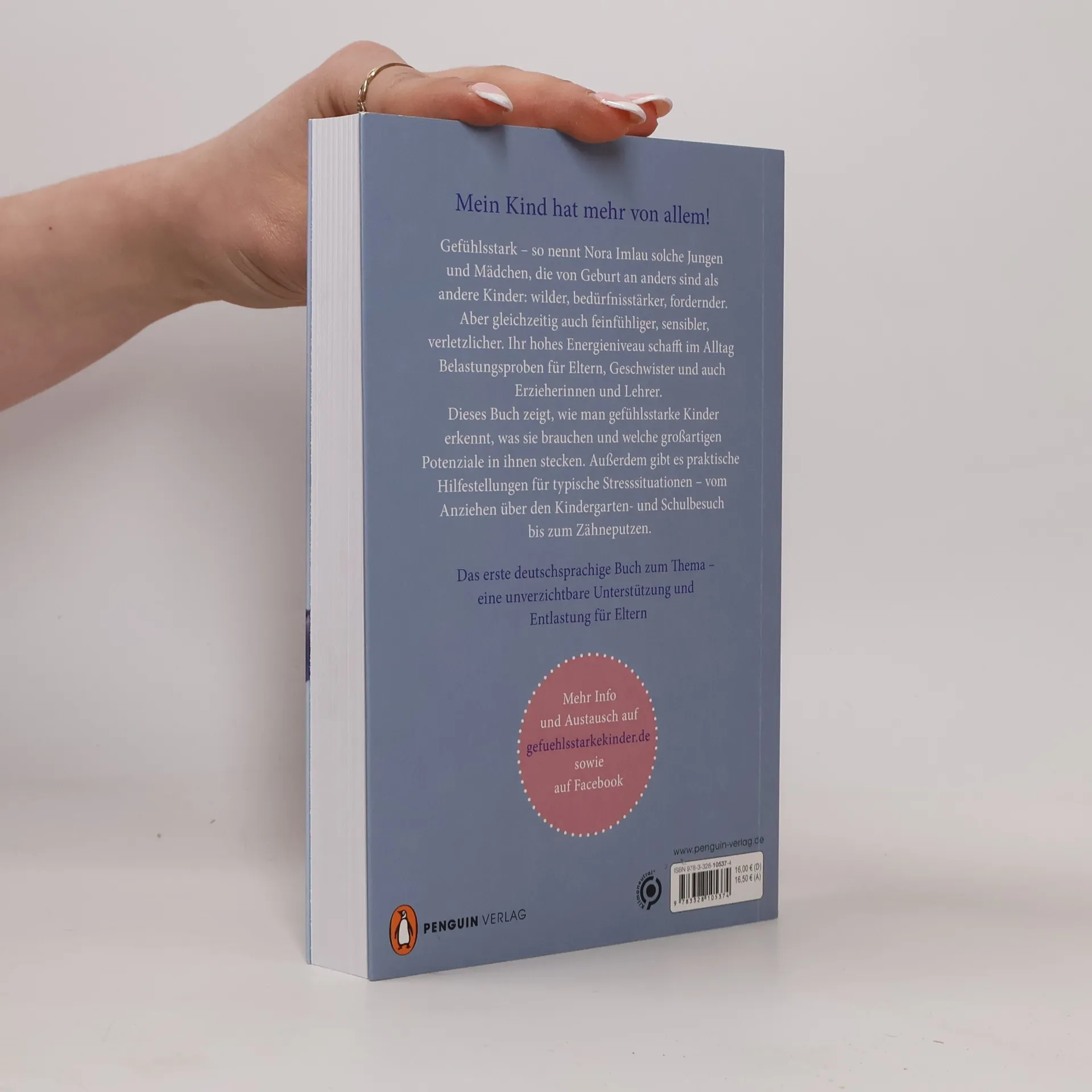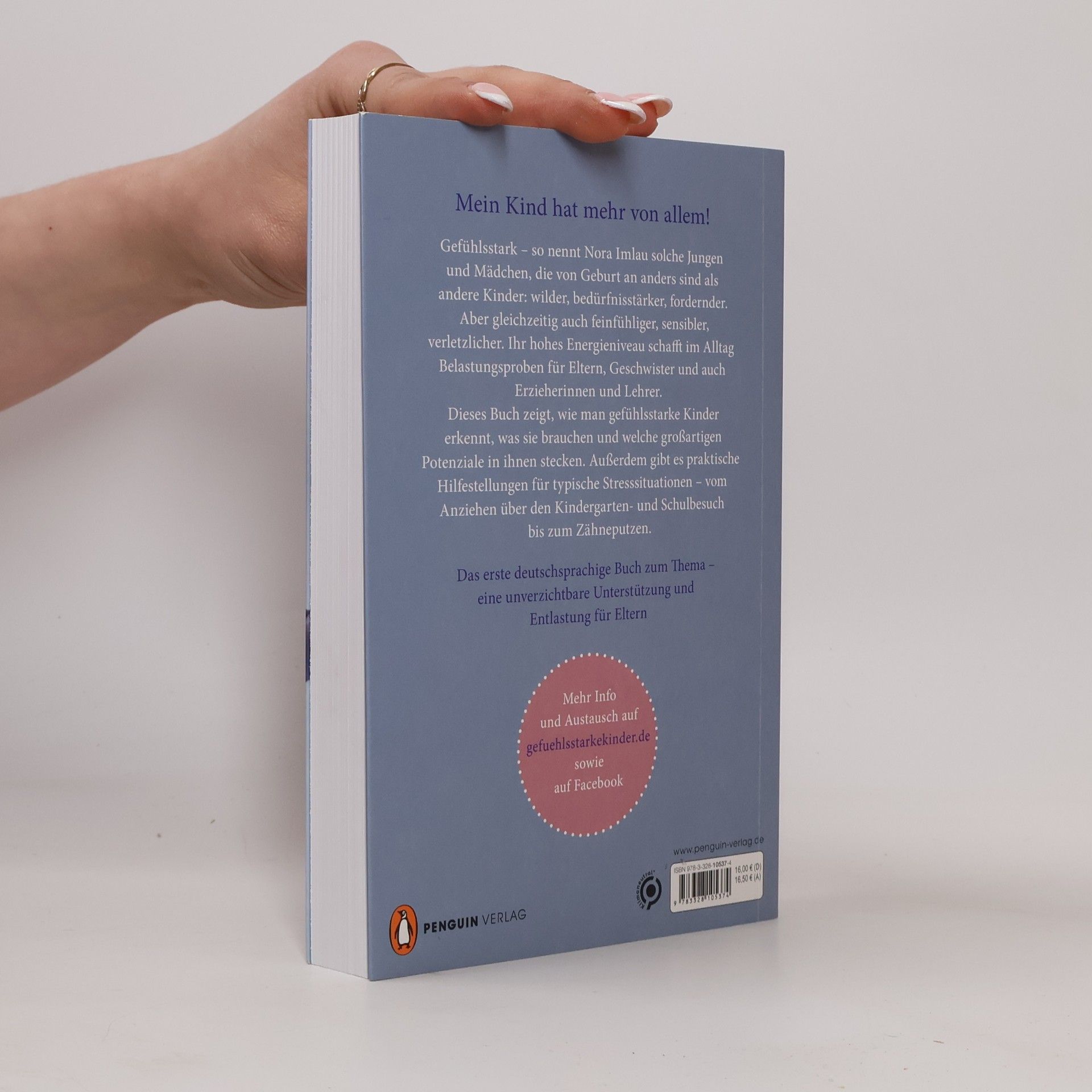 Der Bestseller jetzt im Paperback! Mit Einschätzungsbogen für Eltern und Kinder und praktischen Tipps für typische Stresssituationen Gefühlsstarke Kinder – so nennt Nora Imlau Jungen und Mädchen, die von Geburt an anders sind als andere Kinder: wilder, bedürfnisstärker, fordernder. Aber gleichzeitig auch feinfühliger, sensibler, verletzlicher. Jedes siebte Kind kommt mit dieser besonderen Spielart der Persönlichkeitsentwicklung zur Welt. Und doch fühlen sich viele Eltern sehr allein, wenn ihr Kind als einziges Baby den Kinderwagen hasst und im Rückbildungskurs nicht auf der Matte liegen mag, auch als Kindergartenkind noch nicht alleine einschlafen kann und selbst im Schulalter noch viel Hilfe im Umgang mit seinen heftigen Gefühlsausbrüchen benötigt. Gewohnt fachkundig und einfühlsam leuchtet Nora Imlau aus, warum gefühlsstarke Kinder sich so von Gleichaltrigen unterscheiden und was sie von ihren Eltern brauchen, um einen gesunden Umgang mit ihren intensiven Emotionen zu erlernen. Plus: Ganz praktische Hilfestellungen für typische Stress- und Konfliktsituationen mit gefühlsstarken Kindern – vom Anziehen über den Kindergarten- und Schulbesuch bis zum Zähneputzen. Durchgehend vierfarbig gestaltet. * Mehr Informationen und Test auf gefuehlsstarke-kinder.de Ausstattung: durchgehend vierfarbig