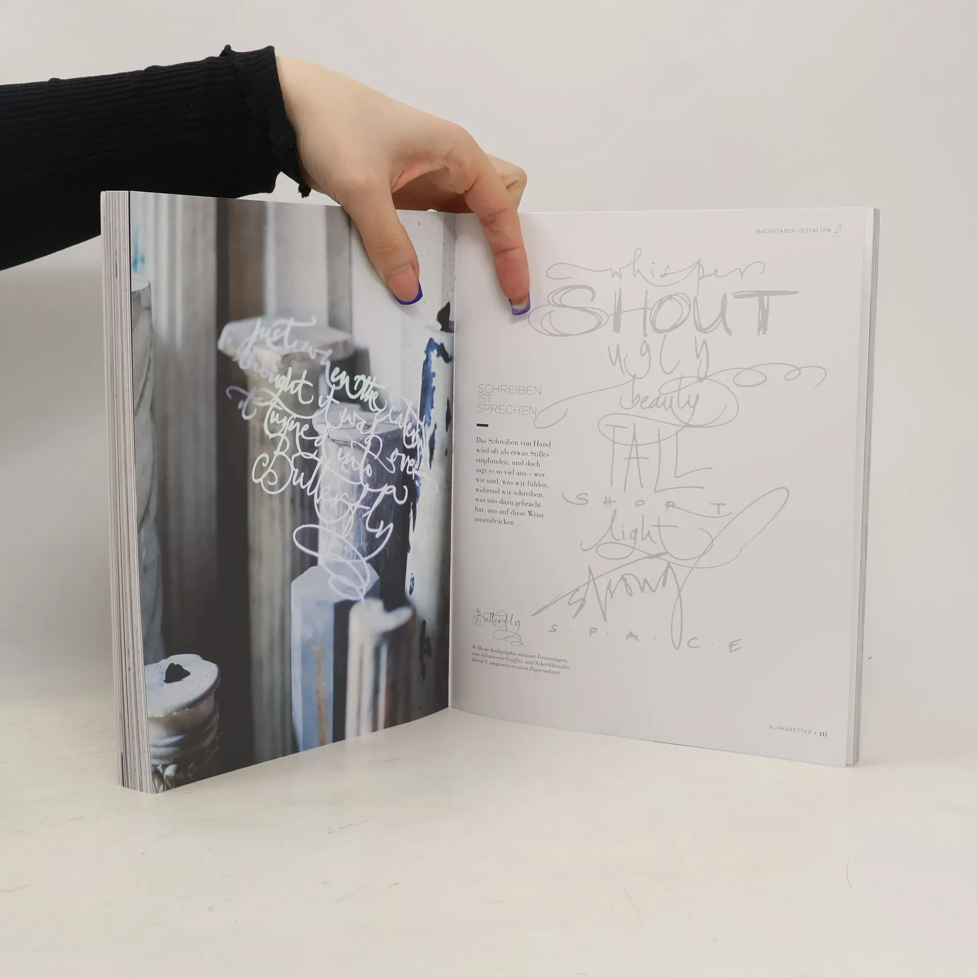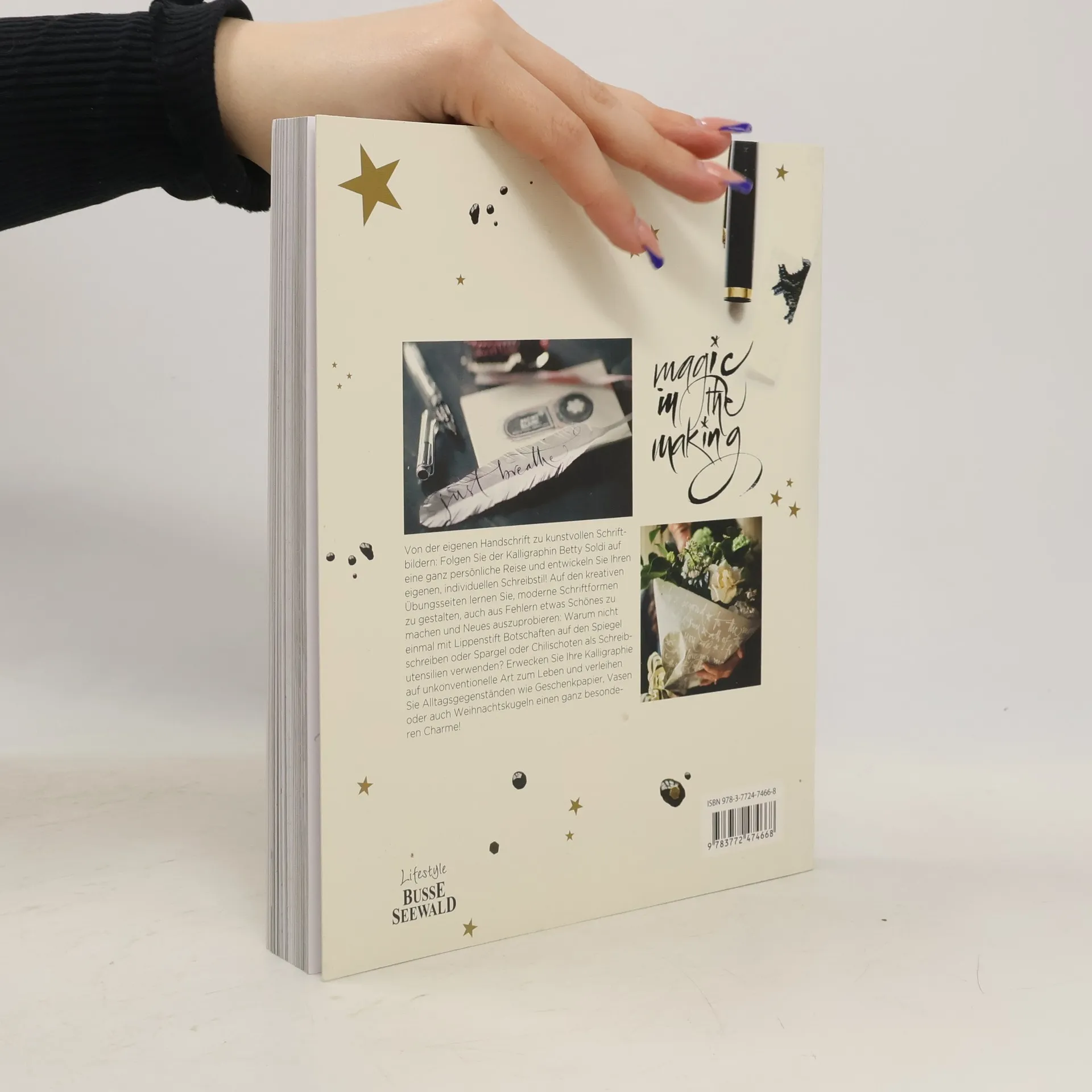 Von der eigenen Handschrift zu kunstvollen Schriftbildern: Folgen Sie der erfolgreichen Kalligraphin Betty Soldi auf eine ganz persönliche Reise und entwickeln Sie Ihren eigenen, individuellen Schreibstil! Auf den kreativen Übungsseiten lernen Sie, moderne Schriftformen zu gestalten, auch aus Fehlern etwas Schönes zu machen und Neues auszuprobieren: Warum nicht einmal mit Lippenstift Botschaften auf den Spiegel schreiben oder Spargel oder Chilischoten als Schreibutensilien verwenden? Erwecken Sie Ihre Kalligraphie auf unkonventionelle Art zum Leben und verleihen Sie Alltagsgegenständen wie Geschenkpapier, Vasen oder auch Weihnachtskugeln einen ganz besonderen Charme!