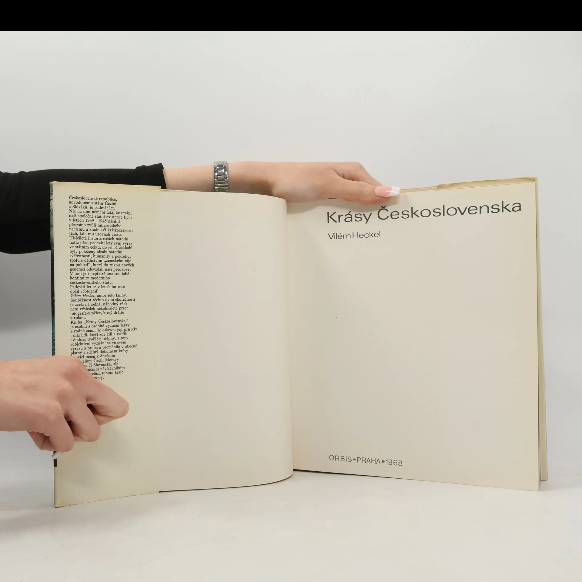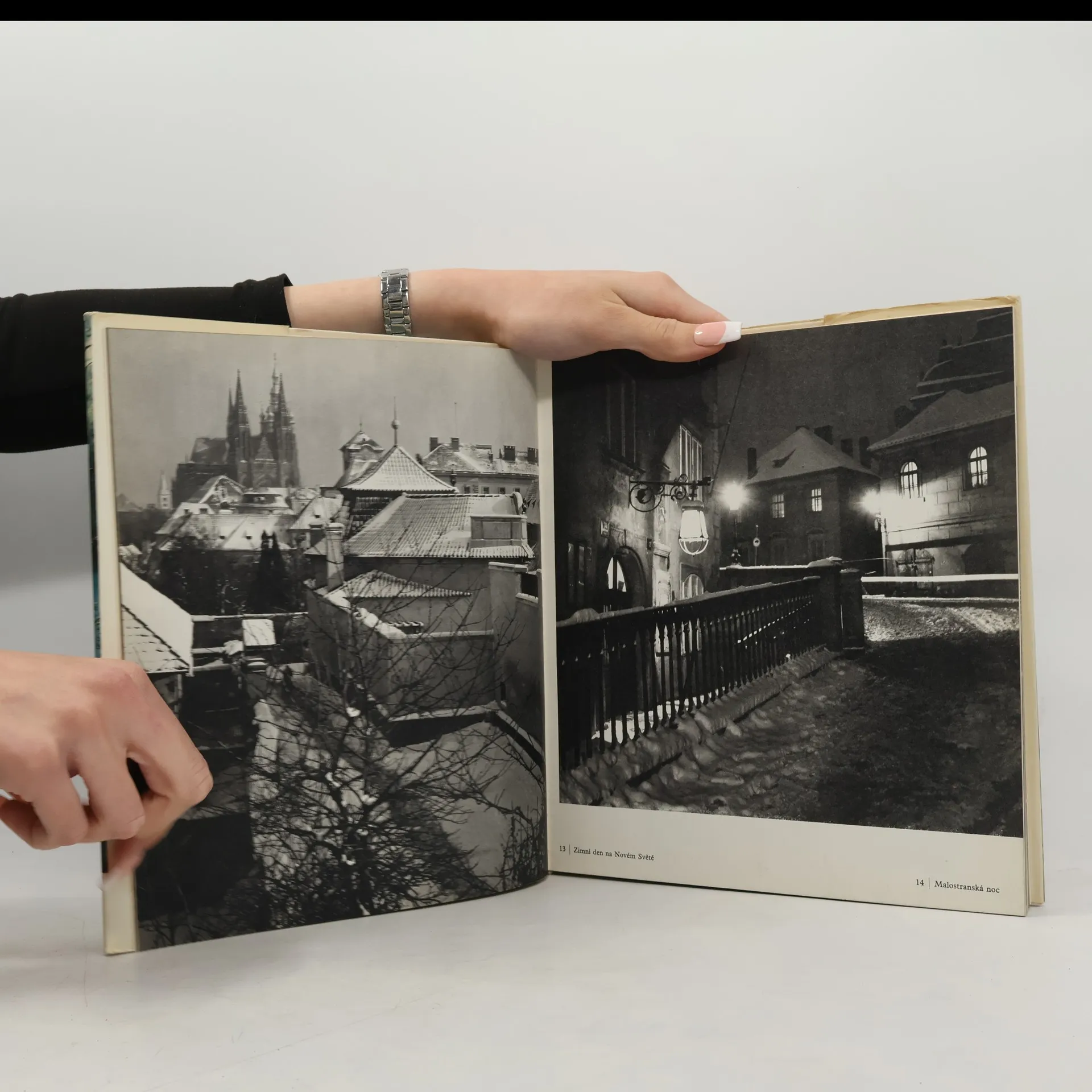 Černobílé fotografie autora doplněné textem česky, německy, anglicky, francouzsky.