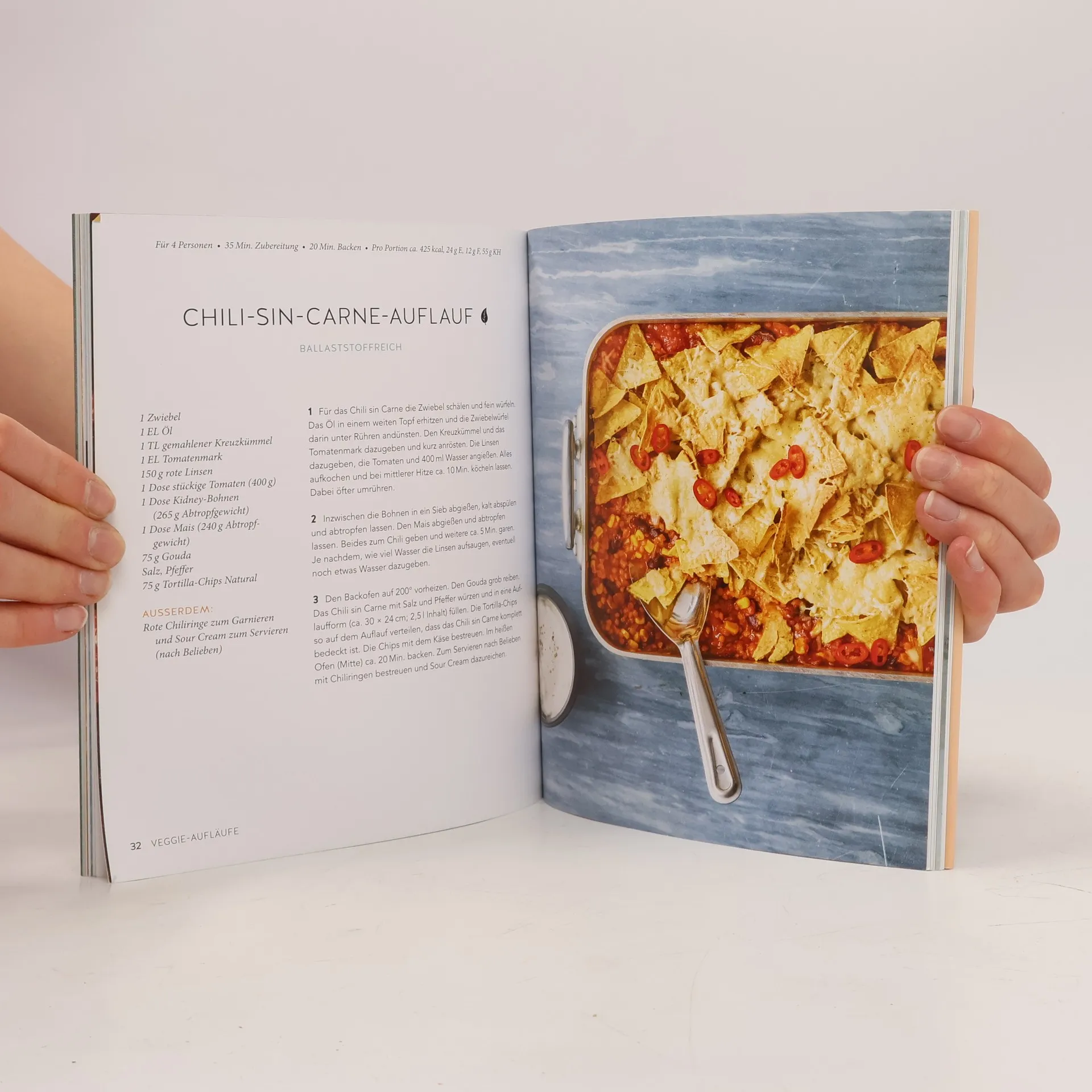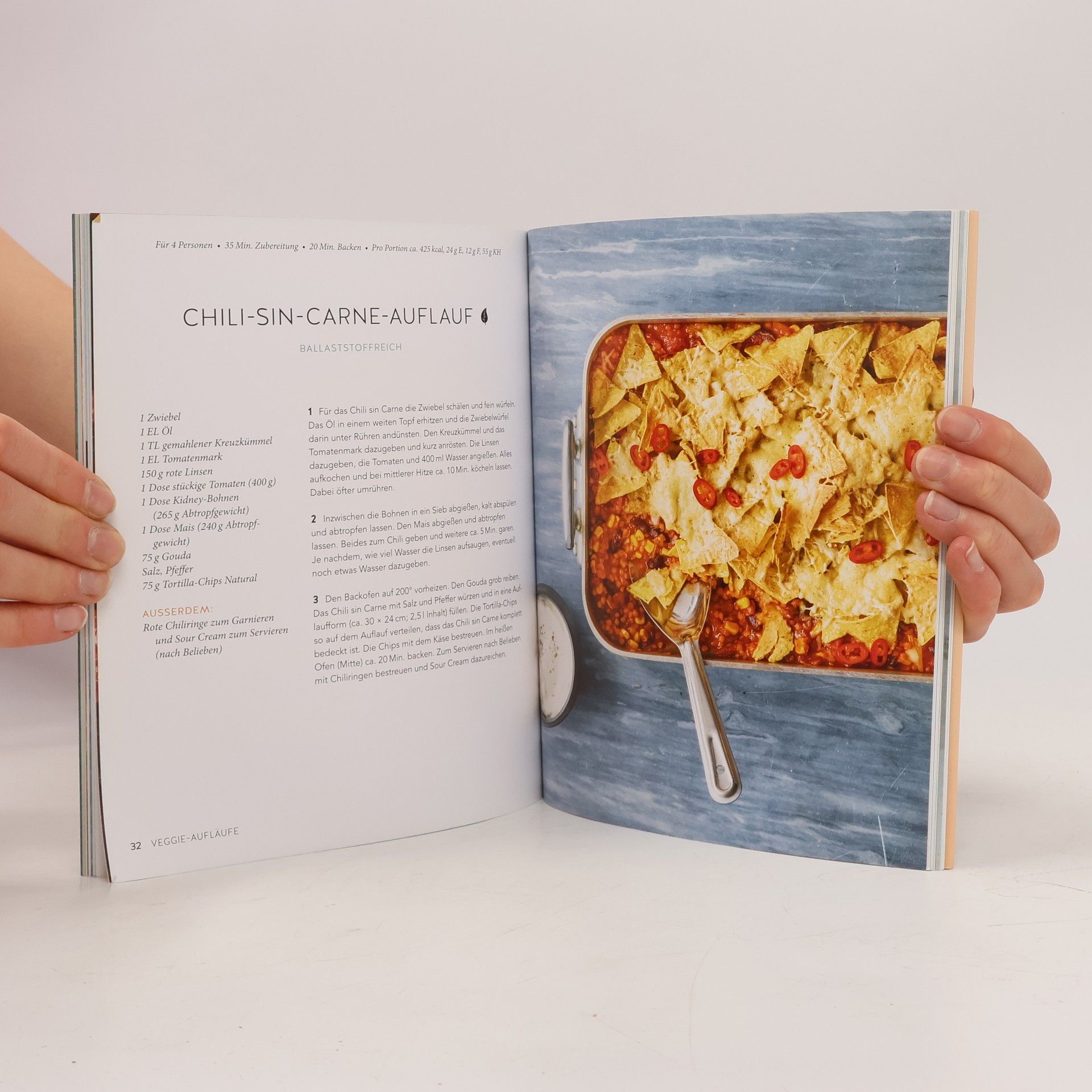 Einmal Aufläufe mit dicker Käsekruste, bitte! Genießer aufgepasst! Mit diesem Küchenratgeber gelingt der leichte Einstieg in die Welt der Aufläufe – ideal für alle, die Überbackenes, Heißes und Knuspriges aus dem Ofen lieben. Soulfood mit knuspriger Kruste: blubbernde Saucen, zartes Gemüse, al dente Nudeln und eine Haube aus geschmolzenem Käse – nichts macht so glücklich wie ein guter Auflauf. Ofenhits für jeden Tag und jede Gelegenheit – ob mit Hackfleisch oder vegetarisch, mit Reis oder Nudeln, herzhaft oder süß: hier findet sich für jeden Geschmack das passende Gericht. Stressfreies Zubereiten ist garantiert mit hilfreichen Tipps zur perfekten Zutatenkombination. Manchmal muss es einfach Komfort-Food sein. Nichts lässt uns mehr dahinschmelzen als ein frisch gebackener Auflauf mit goldgelber Käsekruste oder ein süßer Auflauf mit crunchy Streuseln. Dieser Ratgeber bringt den Klassiker zurück und bietet neue herzhafte und süße Rezepte, um viele Gäste ohne großen Aufwand glücklich zu machen. Während der Auflauf im Ofen gart, bleibt genug Zeit, um die Küche auf Vordermann zu bringen und den Tisch zu dekorieren. Im Rezeptteil finden sich Anleitungen für Aufläufe nach jedem Geschmack, von Gyrosauflauf bis Zucchini-Auflauf alla Parmigiana. Auch der Nachtisch kommt nicht zu kurz: mit Brombeer-Birnen-Crumble und Kokos-Reisauflauf mit Mango ist für süße Schleckermäulchen gesorgt. Einige Rezepte bieten überraschende „Aha!“-Momente.