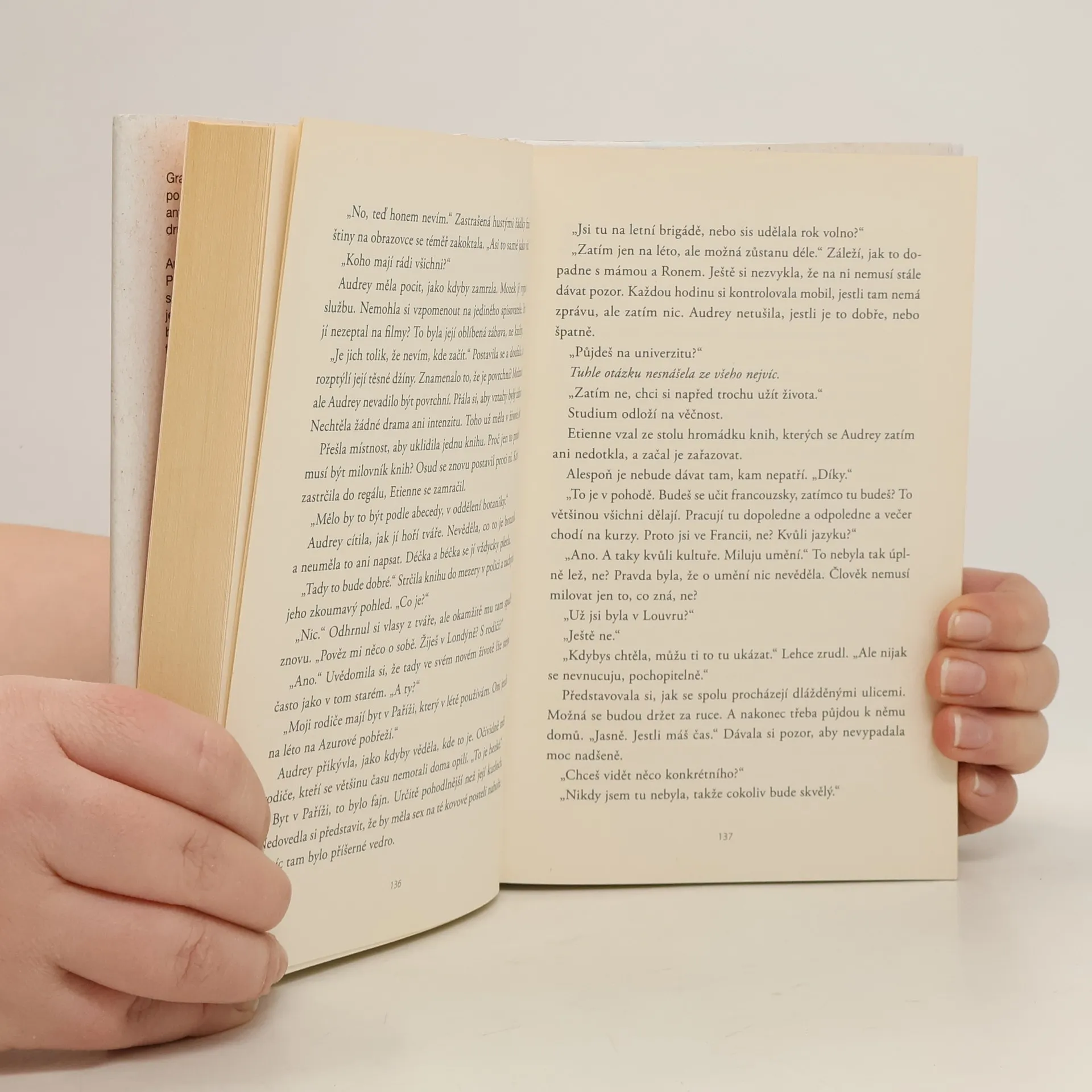 Grace přijíždí do Paříže, aby nalezla klid po bolestném rozchodu, a v místních antikvariátech pátrá po stopách dobrodružného života své babičky. Audrey, mladá žena z Londýna, utíká do Paříže před svou neutěšenou rodinnou situací. Práce v antikvariátu je pro ni na jednu stranu splněný sen, protože může být konečně sama sebou, ale zároveň je to pro ni noční můra – jak může prodávat knihy, když je nesnáší a francouzsky umí jen nadávat? A tak místo aby si užívala svobody, cítí se tu spíš ztracená a vše směřuje k neradostnému konci. Když však jedna druhé vstoupí do cesty, oběma to změní život. Grace ukáže Audrey, že naučit se francouzsky nemusí být utrpení a že ji druzí mohou mít rádi takovou, jaká je. Audrey jí na oplátku pomůže hodit za hlavu zklamání a smutek ze zkrachovalého manželství a stát se krásnou, sebevědomou ženou. Grace pak jednoho dne potká svou dávnou lásku, a když se jí podaří vyrovnat se s temnou minulostí a odhodit svazující zvyky, znovu pocítí radost ze života. Audrey se mezitím zbaví svých nejistot a zamiluje se. Její svět postupně přestane být bitevním polem a stane se léčivým místem pro sdílení radosti i trápení. Obě ženy se stanou opravdovými přítelkyněmi a naleznou chuť i možnost začít žít tak, jak by si přály.