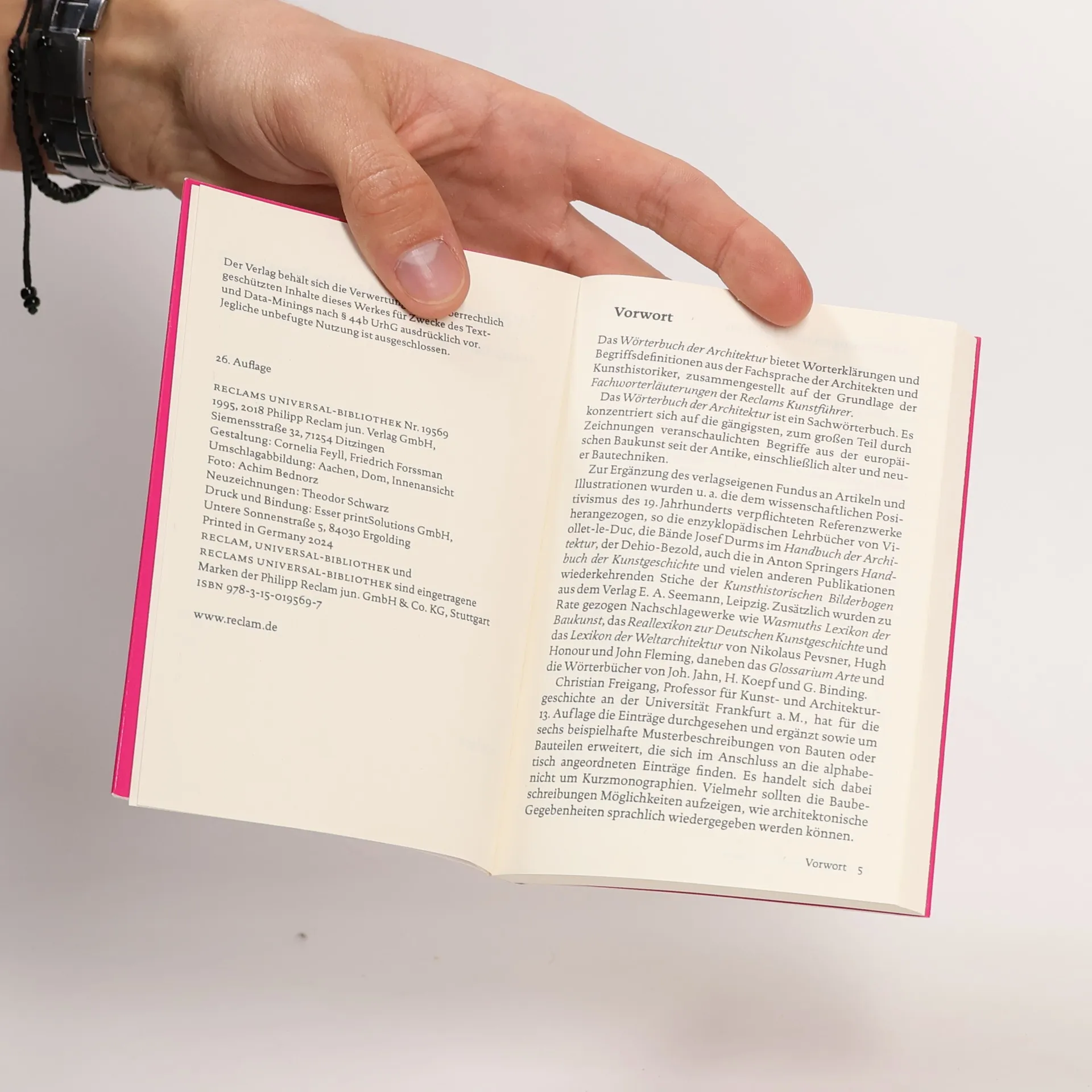 Das »Wörterbuch der Architektur« bietet Worterklärungen und Begriffsdefinitionen aus der Fachsprache der Architekten und Kunsthistoriker. Es konzentriert sich auf die gängigsten historisch verankerten Bezeichnungen von Bauten, Bauteilen, -formen, -ornamenten, -techniken und -materialien aus der europäischen Baukunst seit der Antike. Das reich bebilderte Sachwörterbuch ist erweitert durch sechs Musterbeschreibungen von Bauten oder Bauteilen unterschiedlicher Epochen. Von Abakus bis Zwiebelhelm, vom archaischen Megaron bis zum Penthouse: In alphabetischer Reihenfolge werden die Grundbegriffe der europäischen Baukunst seit der Antike erläutert. Viele sind durch Zeichnungen veranschaulicht. Exemplarische Baubeschreibungen am Ende des Buches zeigen Möglichkeiten auf, wie architektonische Gegebenheiten sprachlich wiedergegeben werden können. Mit dem kleinen, handlichen Format eignet sich dieser Band ideal als Nachschlagewerk für Unterricht und Studium wie auch für die Besichtigung unterwegs.