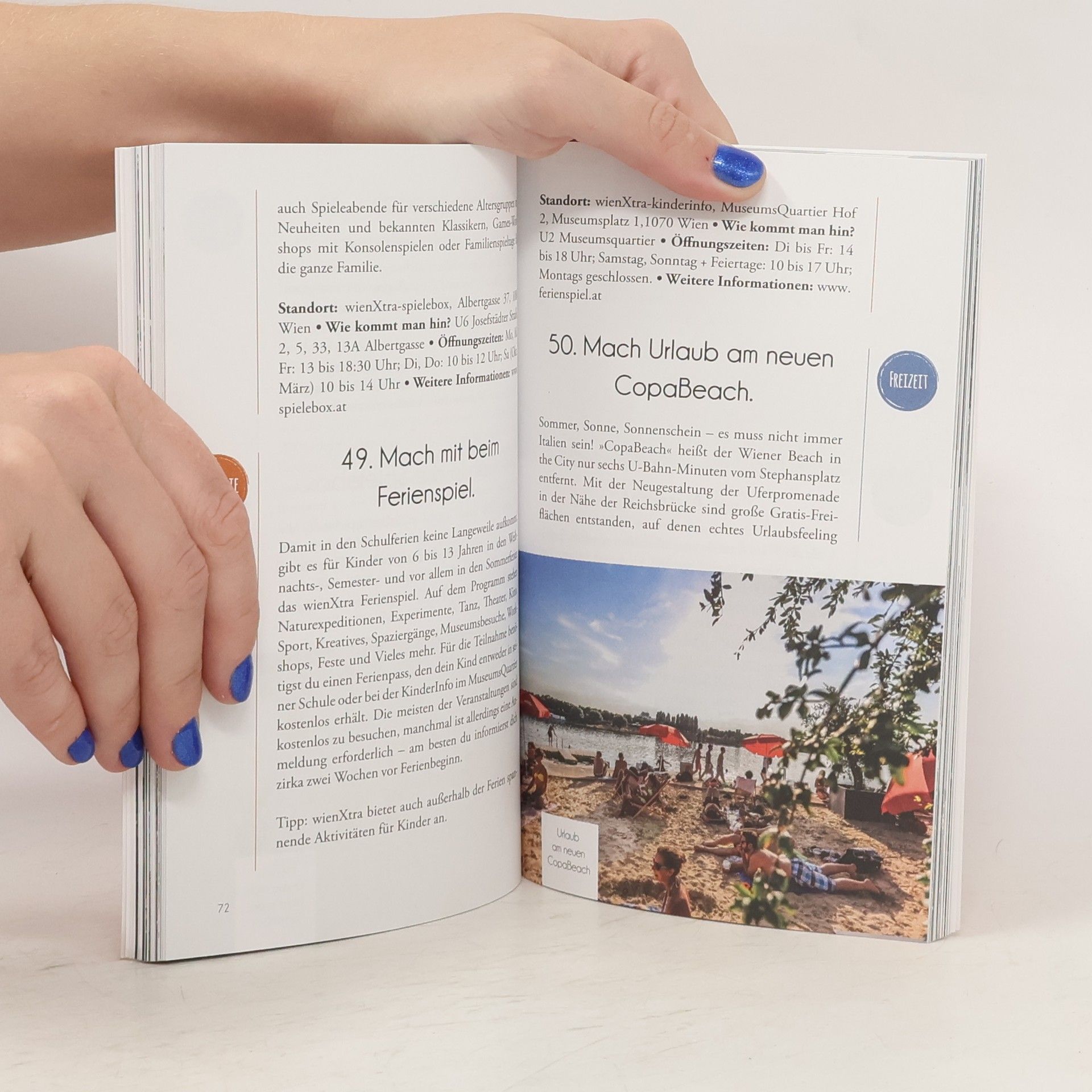 Nackt in der Donau schwimmen. Die Blumengärten in Hirschstetten entdecken. Eine Tour zu den Vienna Murals machen. Bei der langen Nacht der Kirchen dabei sein. Eine Hundertwasserrunde drehen. Alte Stummfilme schauen. Kunst in der Brotfabrik entdecken. Moderne Architektur auf dem Campus bestaunen. Sich auf dem Wiener Zentralfriedhof verirren, um zu sich selbst zu finden. Sich von der Pracht der Kirschblüte im Setagayapark verzaubern lassen. Umsonst mit dem Citybike fahren. Die Seestadt Aspern erkunden. Urlaub auf dem CopaBeach machen … Die aktuellen Städte-Rankings lügen nicht: Wien ist eine der lebenswertesten Städte der Welt. Dieser Guide führt in 101 kostenlosen Erlebnissen durch die Stadt an der Donau. Erlebe Kulturfestivals, kostenlose Sportangebote, entdecke besondere Orte und Events sowie spannende Freizeitangebote für Groß und Klein.