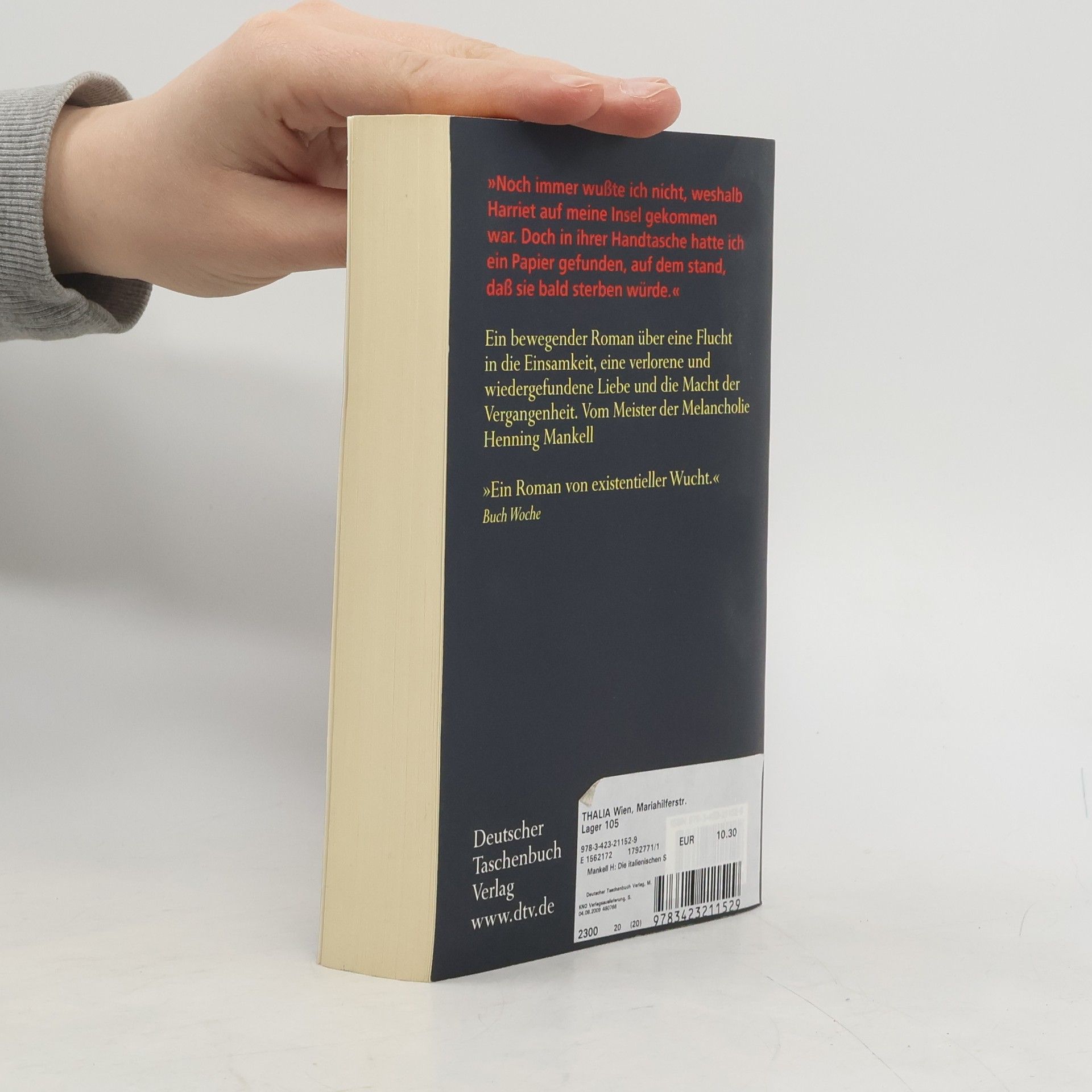 Der schwedische Meister der Melancholie ist zurück! Fredrik Welin ist etwas widerfahren, das er nur »die Katastrophe« nennt. Danach hat sich der ehemalige Chirurg auf eine kleine Insel in den Schären zurückgezogen und meidet jeden Kontakt mit den Menschen. Doch dann steht eines Tages seine Jugendliebe Harriet vor der Tür und erinnert ihn an ein altes Versprechen. Er folgt ihr auf eine Reise in die Vergangenheit, voller unverhoffter Begegnungen mit außergewöhnlichen Menschen. Eine Reise, die ihm den Weg zurück zu den Menschen weisen wird ... Der Bestseller jetzt im Taschenbuch!