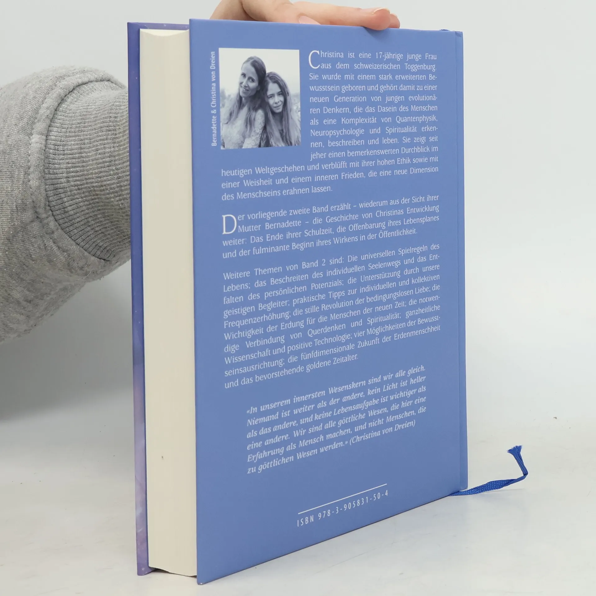 Christina, eine 17-jährige aus dem Toggenburg, gehört zu einer neuen Generation evolutionärer Denker, die das menschliche Dasein als eine Verbindung von Quantenphysik, Neuropsychologie und Spiritualität begreifen. Sie zeigt außergewöhnlichen Durchblick in aktuellen Weltgeschehen und beeindruckt mit hoher Ethik sowie einer Weisheit und innerem Frieden, die eine neue Dimension des Menschseins erahnen lassen. Ihre Überzeugung, dass wir im Kern alle gleich sind und göttliche Wesen sind, die menschliche Erfahrungen machen, prägt ihre Sichtweise. Der zweite Band, erzählt aus der Perspektive ihrer Mutter Bernadette, setzt Christinas Entwicklung fort: von ihrem Schulabschluss über die Enthüllung ihres Lebensplans bis hin zu ihrem öffentlichen Wirken. Themen sind die universellen Spielregeln des Lebens, der individuelle Seelenweg, die Entfaltung des persönlichen Potenzials und die Unterstützung durch geistige Begleiter. Praktische Tipps zur Frequenzsteigerung, die stille Revolution der bedingungslosen Liebe, Erdung für die neue Zeit, die Verbindung von Querdenken und Spiritualität sowie ganzheitliche Wissenschaft und positive Technologie werden behandelt. Zudem werden Möglichkeiten der Bewusstseinsausrichtung und die Vision einer fünfdimensionalen Zukunft der Menschheit thematisiert.