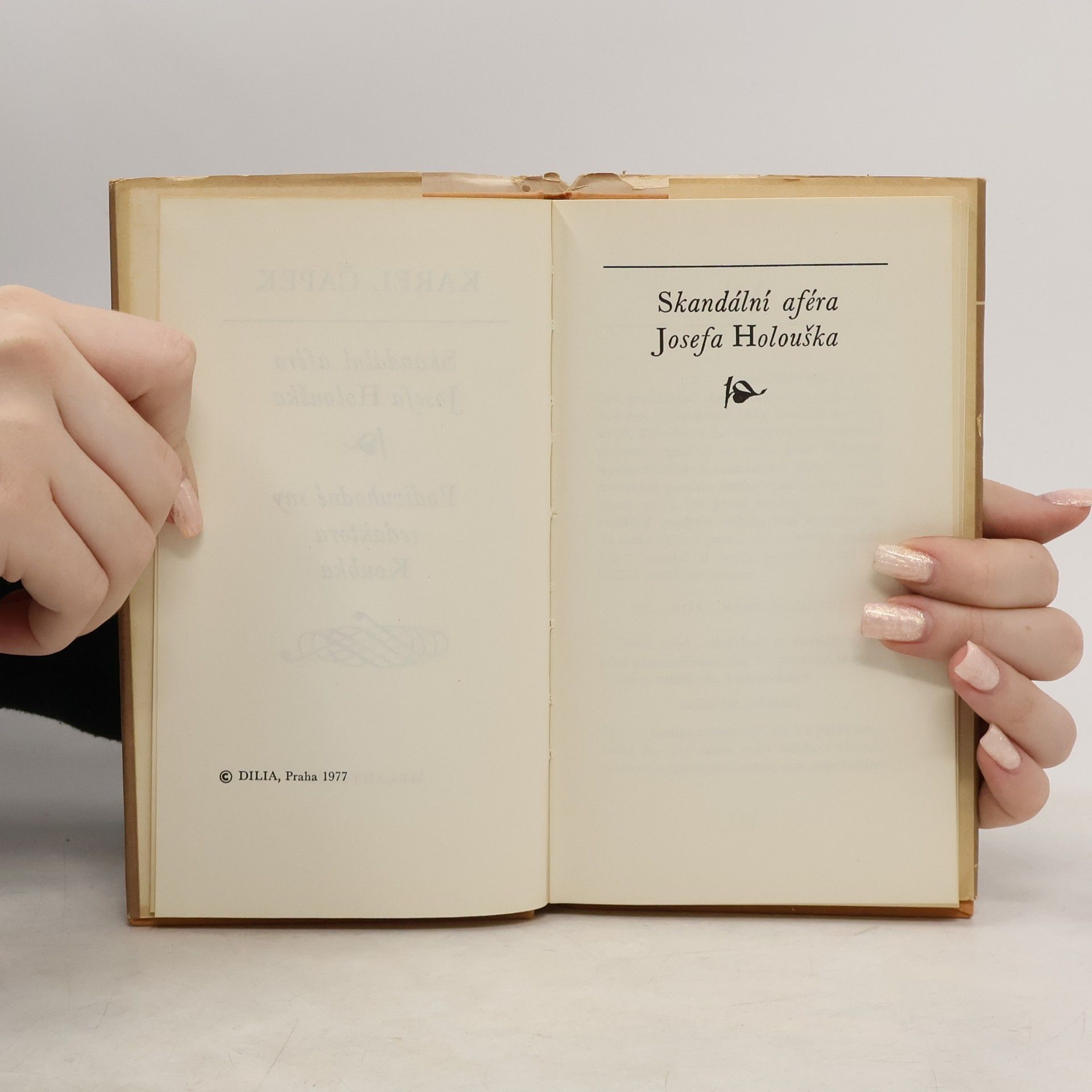 Dvě satirické povídky. Skandální aféra Josefa Holouška - satirická novela líčí, jak noviny rozpoutaly pomlouvačnou kampaň proti naprosto nevinné osobě. Hrdina se nemůže bránit, zbývá mu jen čekat až aféra utichne.