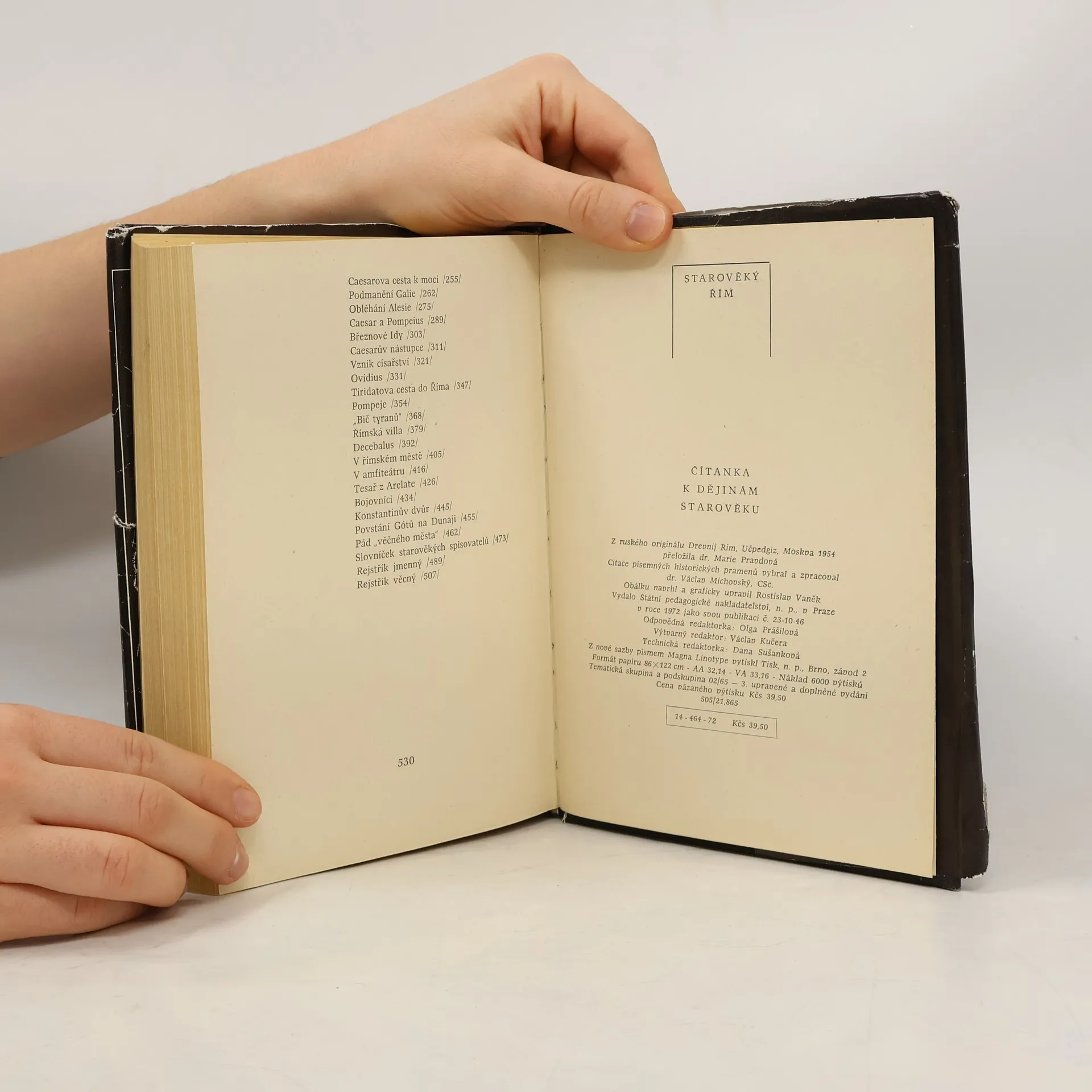 Čítanka k dějinám starověku. Dlouhou a bohatou cestou antické historie od založení Říma až po pád "věčného města" provází čítanka v rozsáhlém souboru kratších črt, v nichž se odvíjí průběh významných dějinných událostí i tehdejší každodenní život a osudy proslulých osobností. Častěji než populárně naučný styl volili autoři přímo beletristickou formu. Ke každé samostatné kapitole jsou připojeny stručné ukázky ze starověkých písemných pramenů. 3., upravené a doplněné vydání