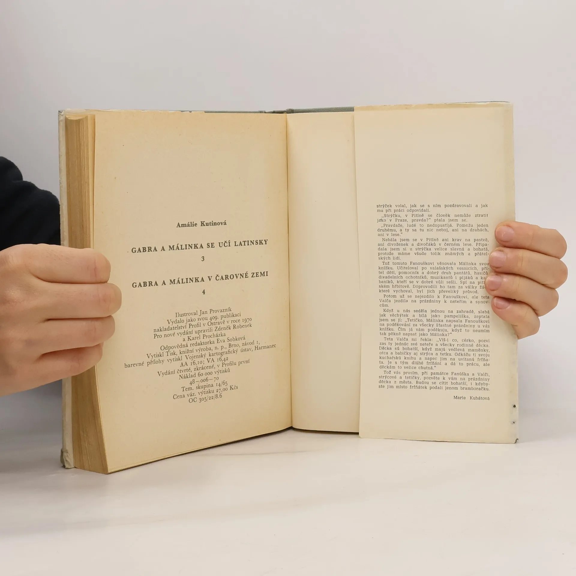 Gabra a Málinka se učí latinsky; Gabra a Málinka v čarovné zemi Třetí a čtvrtý díl románu zachycuje obě dívčí hrdinky nejprve jako sekundánky valašskomeziříčského gymnasia a posléze jejich příhody na prázdninách v dědině na moravsko-slovenských hranicích.