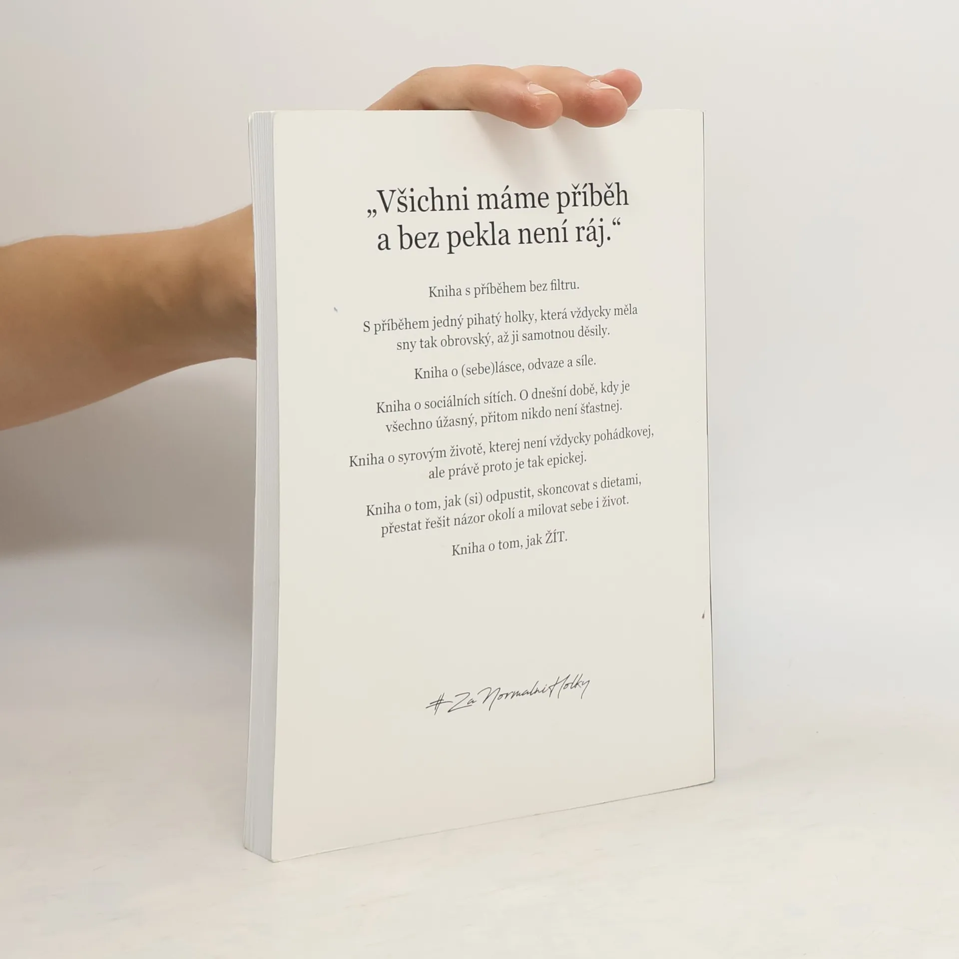 O ČEM JE KNIHA BEZ FILTRU? Knihu BEZ FILTRU jsem napsala já, Kristýna Dolejšová, autorka projektu #ZaNormalniHolky. Co na vás v knize čeká? Můj osobní příběh. O mém dětství, závislosti na sladkém, neustálých dietách, toxickém vztahu a mnohem víc. Jak a proč vzniknul projekt #ZaNormalniHolky Výsledky anonymního dotazníku o těle a sebevědomí, jenž vyplnilo přes 5000 dívek Odpovědi na vašich 50 nejčastějších otázek Sociální sítě a jejich vliv na sebedůvěru dětí Kyberšikana, sexting a bezpečnost na internetu Sebeláska - co to je a proč ji praktikovat Tři zásadní způsoby, jak praktikovat sebelásku Vztah k jídlu a jak ho zahojit Mých 13 osobních hodnot, které mi vždy pomohou odpustit si a vrátit se do hry Skutečný rozhovor mezi mnou a jednou čtenářkou Perličky z projektu WORKBOOK - 30 stran připravených na Tvou kreativní energii a (znovu)objevení ženskosti