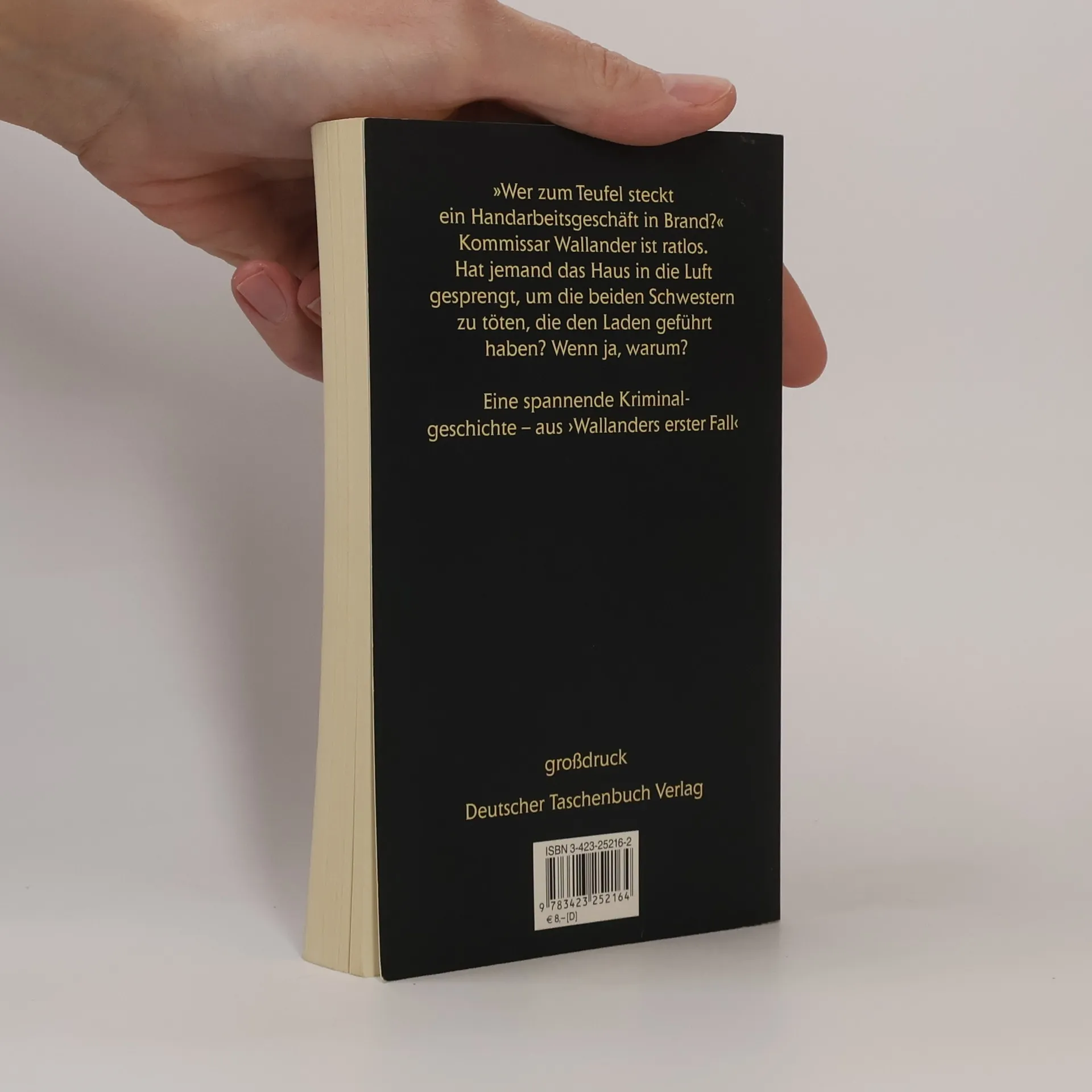 Vier verbrannte Leichen in Ystad. Mord? Wallander ermittelt ... Der Roman aus ›Wallanders erster Fall‹ – in großer Schrift. In der Nähe von Ystad stürzt ein Sportflugzeug ab, aus dem brennenden Wrack werden zwei verkohlte Körper geborgen. Achtundvierzig Stunden später wird ein Handarbeitsgeschäft in die Luft gesprengt, und zwei alte Damen liegen fast bis zur Unkenntlichkeit verbrannt in den Trümmern. Mord? Die beiden Schwestern weisen Einschußstellen am Kopf auf. Ein Fall für Kurt Wallander. Doch noch bevor er die Ermittlungen richtig aufnehmen kann, muß er seinen eigenen Vater aus dem Gefängnis holen, weil der versucht hat, in Ägypten auf eine Pyramide zu steigen. Es bleibt Wallander nichts anderes übrig, als selbst nach Kairo zu reisen, nicht ahnend, daß ihn die Rettung des Vaters auf eine entscheidende Spur im aktuellen Fall führen wird …
