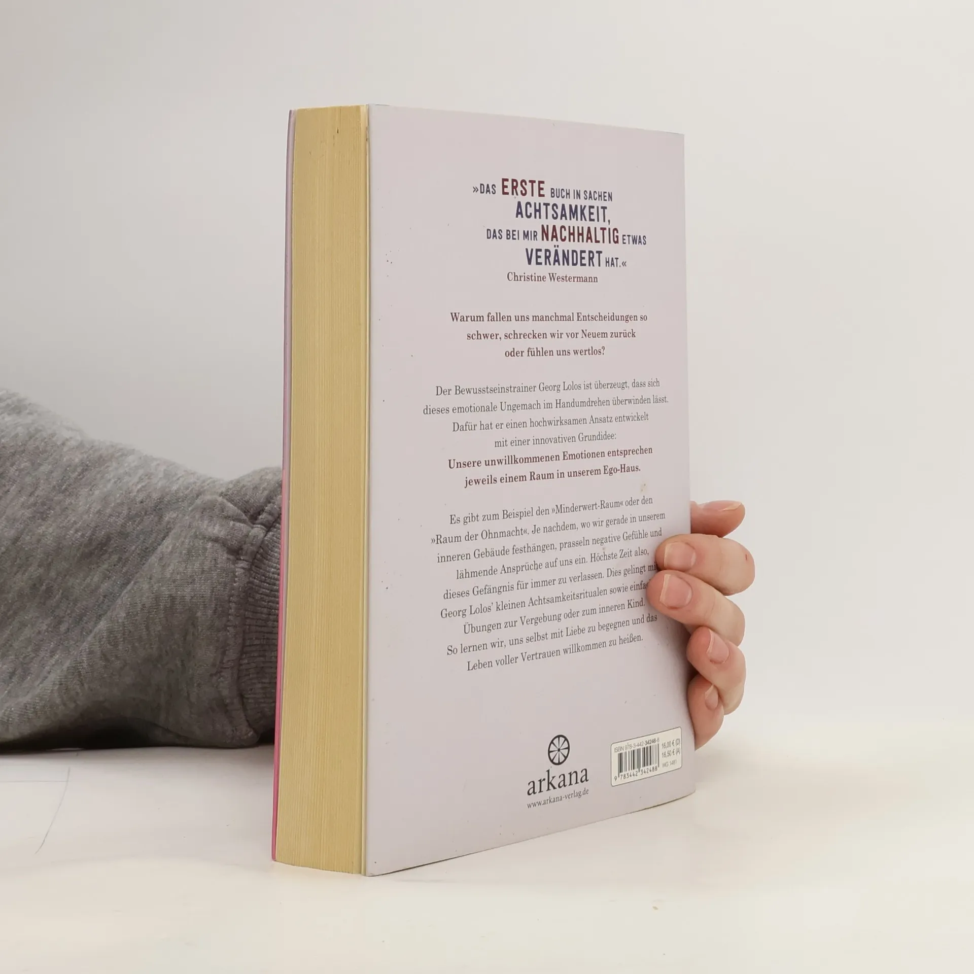 »Das ERSTE Buch in Sachen Achtsamkeit, das bei mir nachhaltig etwas verändert hat.« Christine Westermann Warum fallen uns manchmal Entscheidungen so schwer, schrecken wir vor Neuem zurück oder fühlen uns wertlos? Der Bewusstseinstrainer Georg Lolos ist sich sicher, dass unser Ego schuld daran ist. Um emotionale Ego-Tiefs zu meistern, hat er einen hochwirksamen Ansatz entwickelt. Seine Grundidee dabei: Das Ego entspricht einem Haus mit zehn Räumen. Unten befindet sich zum Beispiel der Minderwert-Keller, in ihm sehnen wir uns nach Liebe und Zuspruch. Im Kontroll-Raum dagegen begegnen wir uns selbst und anderen voller Misstrauen und Perfektionismus. Lolos geht unser inneres Ego-Zuhause Stockwerk für Stockwerk durch und zeigt präzise, welche negativen Gefühle oder falschen Glaubenssätze uns lähmen. Zugleich weist er mit leicht erlernbaren Achtsamkeitsritualen zu Vergebung, Selbstliebe und dem inneren Kind den Weg heraus aus dem Ego-Gefängnis. So können wir das Leben endlich willkommen heißen: liebevoll, gelassen und voller Vertrauen. Mit Achtsamkeitsritualen, Übungen zum inneren Kind und für mehr Selbstliebe.