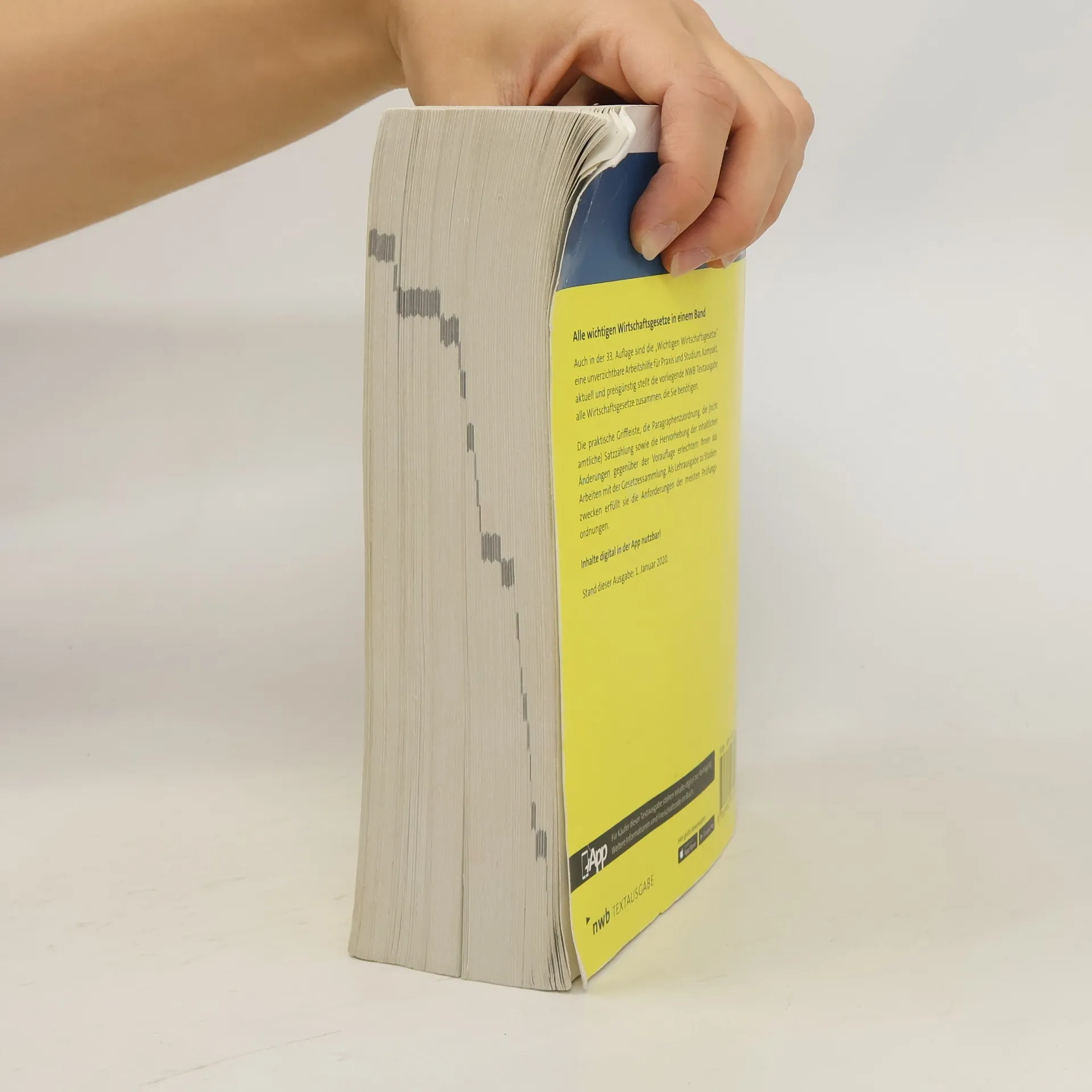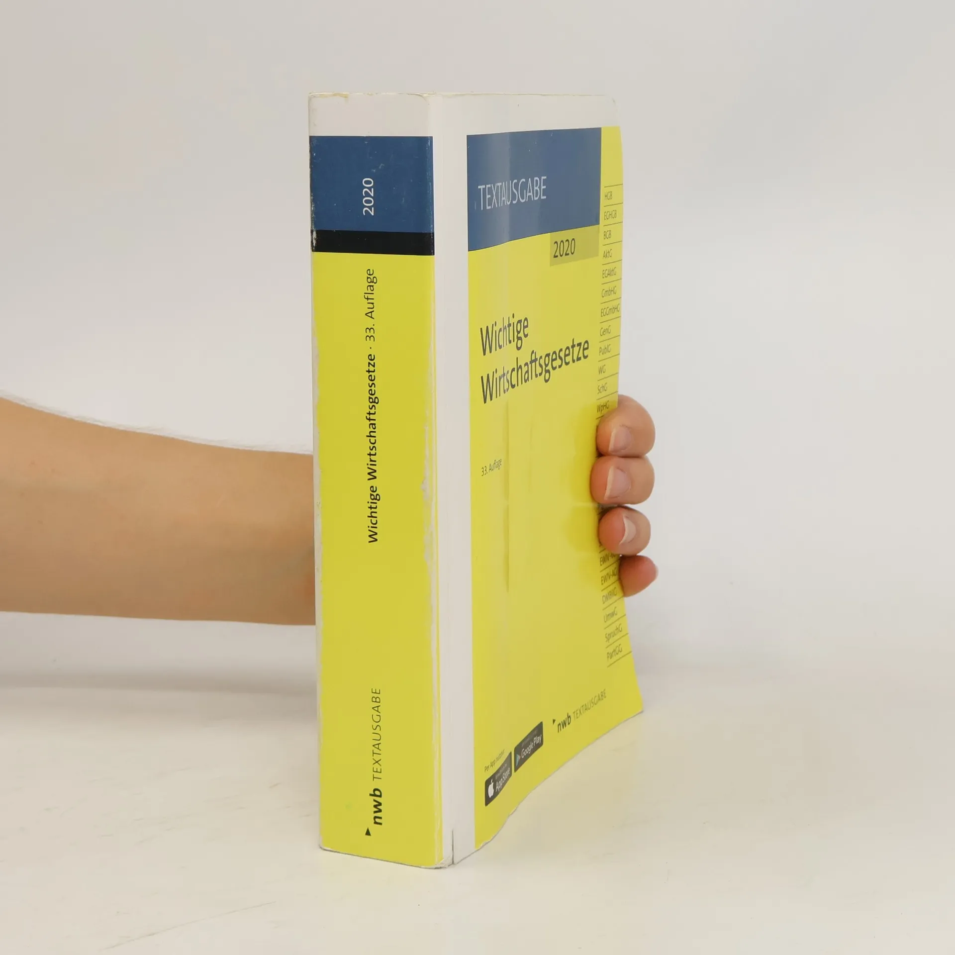 Alle wichtigen Wirtschaftsgesetze in einem Band. Die 32. Auflage der „Wichtigen Wirtschaftsgesetze“ ist eine unverzichtbare Arbeitshilfe für Praxis und Studium. Diese kompakte und aktuelle NWB Textausgabe vereint alle benötigten Wirtschaftsgesetze. Die praktische Griffleiste, Paragraphenzuordnung, nicht amtliche Satzzählung und die Hervorhebung inhaltlicher Änderungen erleichtern die Nutzung der Gesetzessammlung. Als Lehrausgabe erfüllt sie die Anforderungen der meisten Prüfungsordnungen. Zusätzliche Services wie kostenlose Aktualisierungen der Inhalte im Internet sowie in der App „NWB Gesetze“ machen dieses Werk besonders nützlich und verlässlich. Stand dieser Ausgabe: 1. Januar 2019. Inhaltsverzeichnis: I. Handelsgesetzbuch (HGB). II. Einführungsgesetz zum Handelsgesetzbuch (EGHGB). III. Bürgerliches Gesetzbuch (BGB) – Auszug. IV. Aktiengesetz (AktG). V. Einführungsgesetz zum Aktiengesetz (EGAktG). VI. Gesetz betreffend die Gesellschaften mit beschränkter Haftung (GmbHG). VII. Einführungsgesetz zum GmbHG. VIII. Gesetz betreffend die Erwerbs- und Wirtschaftsgenossenschaften (GenG). IX. Gesetz über die Rechnungslegung von bestimmten Unternehmen (PublG). X. Wechselgesetz (WG). XI. Scheckgesetz (SchG). XII. Gesetz über den Wertpapierhandel (WpHG). XIII. Insolvenzordnung (InsO). XIV. Anfechtungsgesetz (AnfG). XV. Mitbestimmungsgesetz (MitbestG). XVI. Drittelbeteiligungsgesetz (DrittelbG). XVII. MgVG. XVIII. SE-VO. XIX. SE-Ausfü