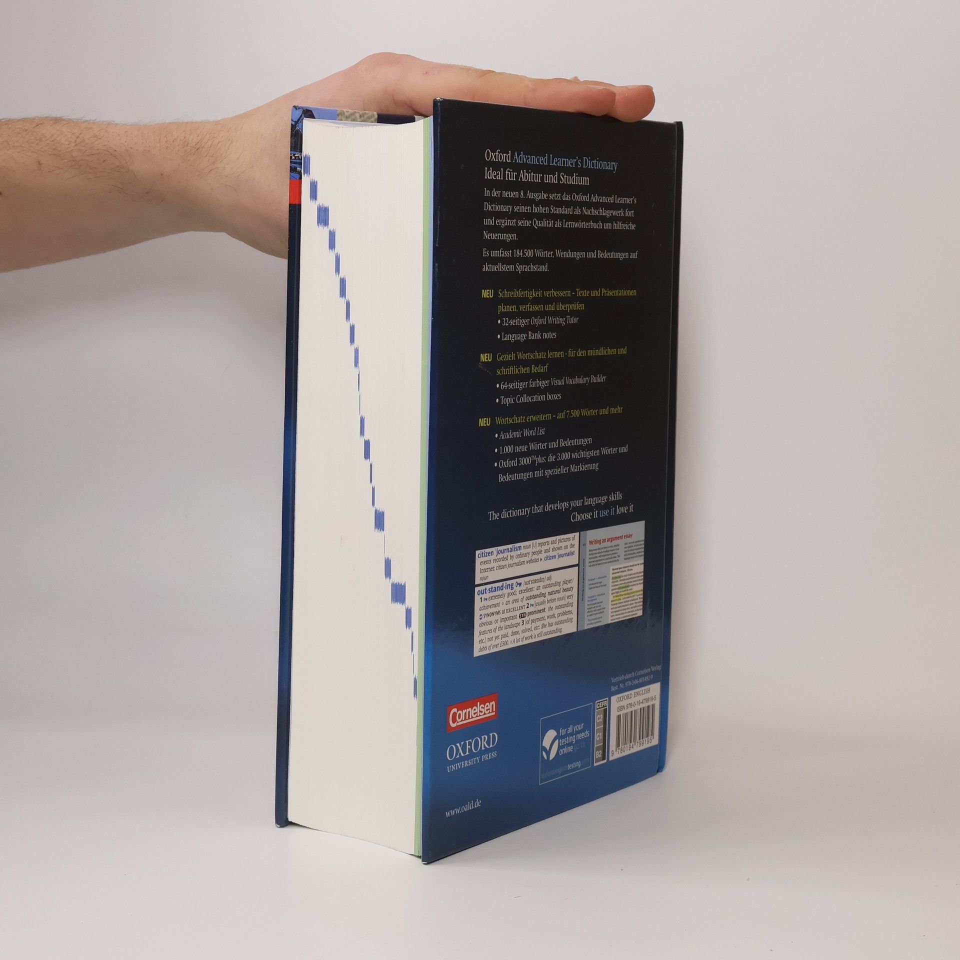 The Oxford Advanced Learner's Dictionary gives more help and more support than any other dictionary at this level. It focuses on learners' need to understand and use words correctly, and to develop their core language skills. The 8th edition features a new interactive Oxford iWriter and a new 32- page Oxford Writing Tutor, specifically designed to improve writing skills. NEW Oxford iWriter and Oxford Writing Tutor: Teachers and students around the world have told us how difficult it is towrite well in English. Now students can learn how to structure their essays, how to write different types of essays and presentations, and how to write formal English.