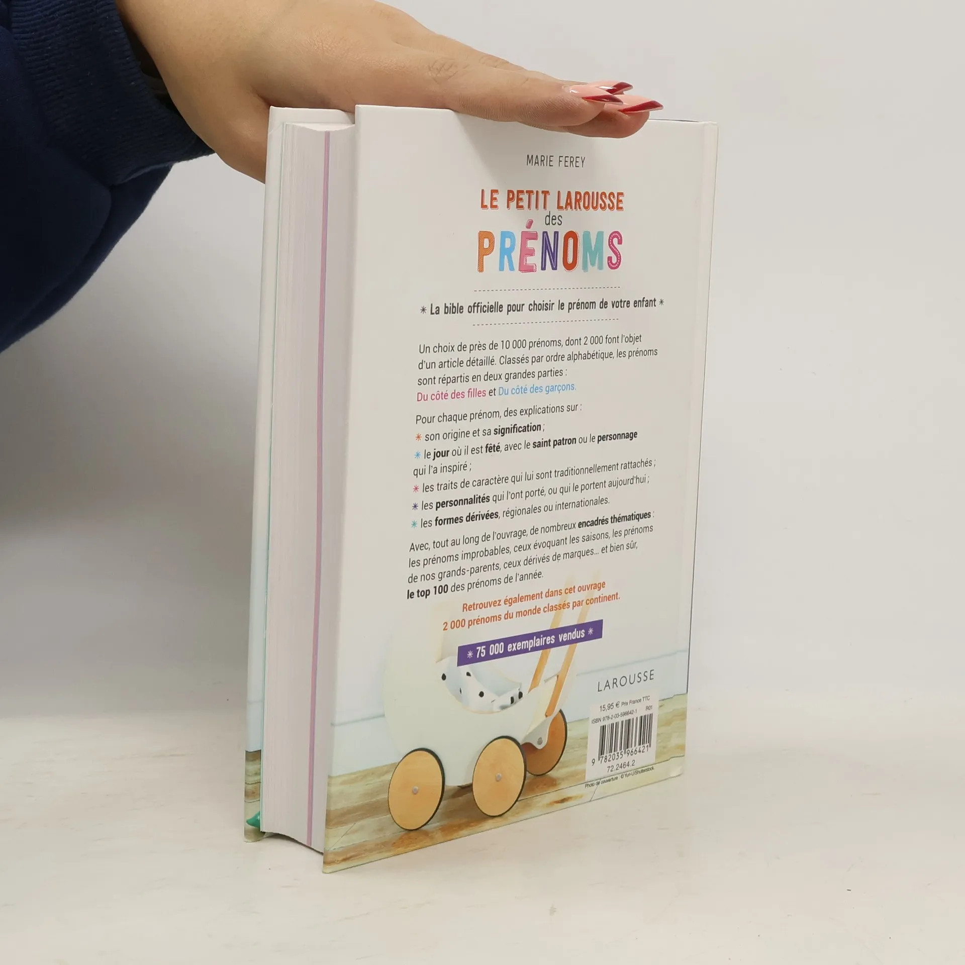 La bible officielle pour choisir le prénom de votre enfantUn choix de près de 10 000 prénoms, dont 2 000 font l’objet d’un article détaillé. Classés par ordre alphabétique, les prénoms sont répartis en deux grandes parties : Du côté des filles et Du côté des garçons.Pour chaque prénom, des explications sur : Avec en plus, tout au long de l’ouvrage, des encadrés thématiques : les prénoms improbables, ceux évoquant les saisons, les prénoms de nos grands-parents, ceux dérivés de marques… et bien sûr, le top 100 des prénoms de l’année.Avec également en milieu d’ouvrage : Les prénoms du monde qui présente 2 000 prénoms étrangers classés par continent.75 000 exemplaires vendus