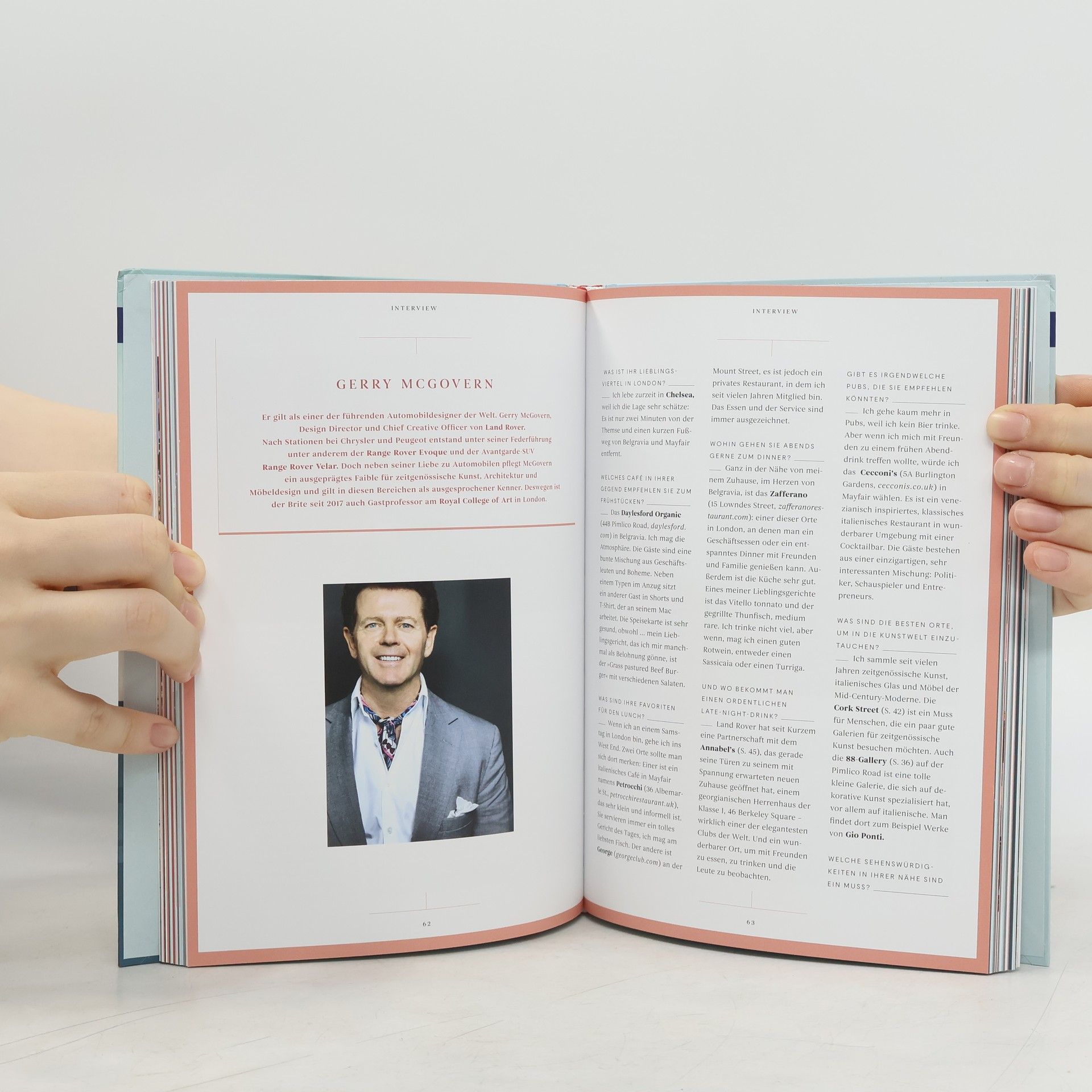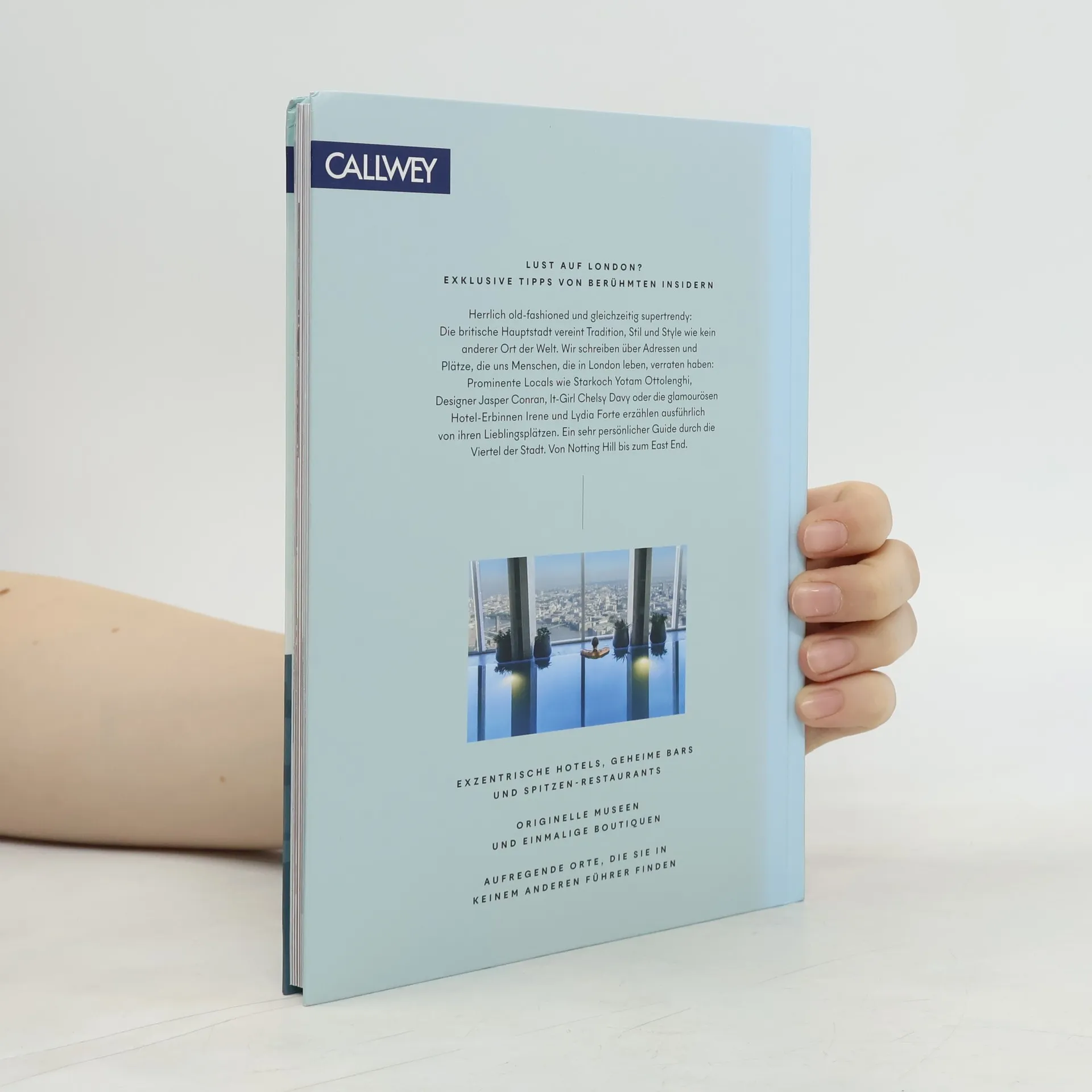 Big Ben, London Eye oder Buckingham Palace kennt jeder. Doch wo pulsiert die Stadt, wo ist das urige und quirlige London zu finden? Wo treffen sich die Locals und Insider? Auf verschiedenen Touren durch die hippsten Viertel der Stadt, führen Star-Koch Yotam Ottolenghi, It-Girl Chelsy Davy oder Designer Jasper Conran. Die besten Hotels der Stadt kennen natürlich die Rocco Forte-Hotelerbinnen Lydia und Irene Forte. Die verschiedenen Routen durch die Viertel der Stadt sind von jeweils einem Paten aus der Kunst- oder Modewelt aufbereitet.