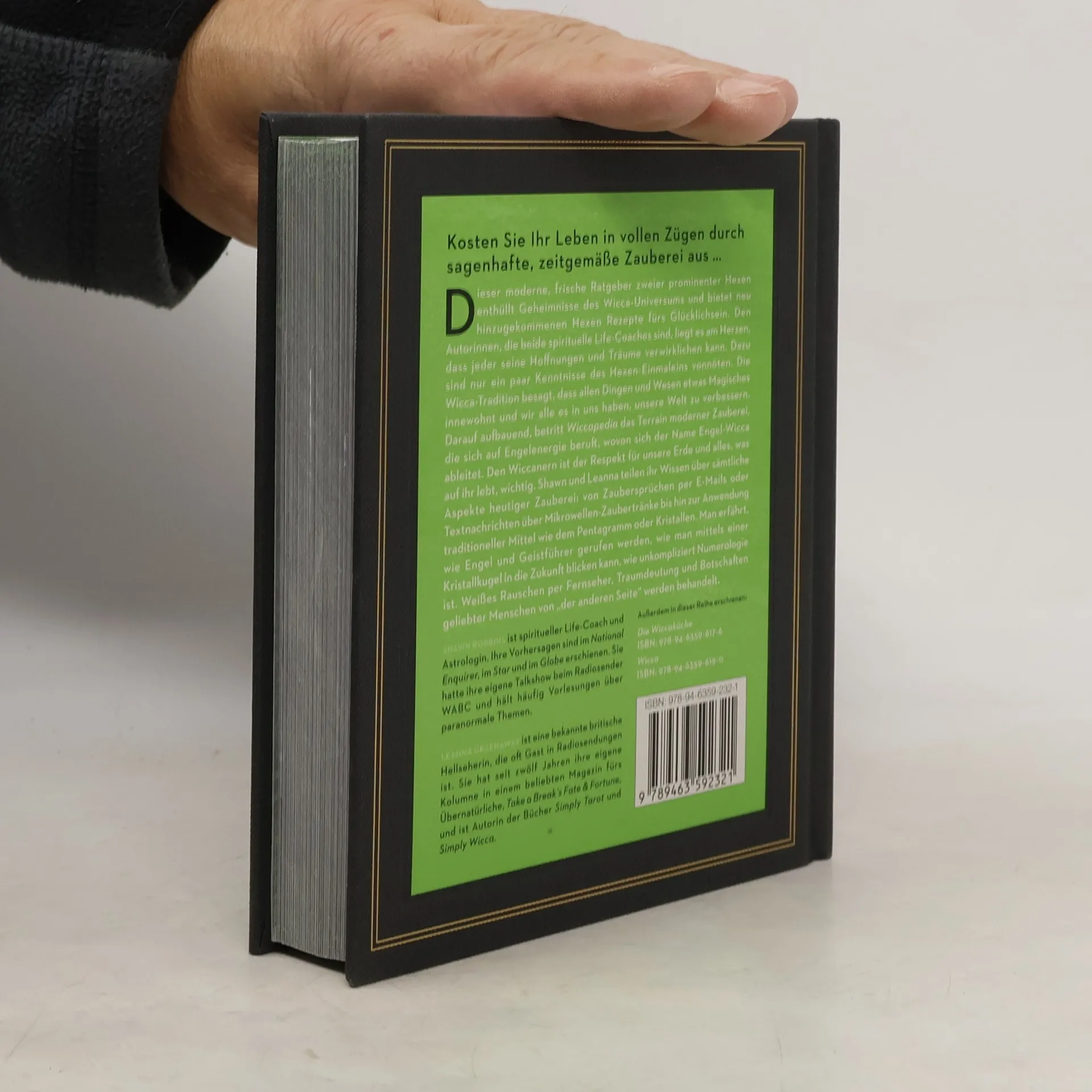 Dieser von zwei berühmten Hexen geschriebene frische, moderne Leitfaden enthüllt die Geheimnisse des Wiccan-Universums und liefert Neulingen das Glücksrezept. Laut der Wicca-Tradition sind alle Dinge „magikalisch“: Sie haben also die Kraft in sich, die Welt um sich herum besser zu machen. Wiccapedia baut auf diesem Glauben auf und hat eine neuere Art der Zauberei auf der Grundlage der Engelsenergie Angelic Wicca gegründet, die den Respekt vor der Erde und allen Lebewesen betont. Shawn und Leanna teilen praktische Informationen zu allen Aspekten moderner Hexerei: von E-Mail- oder SMS-Zaubersprüchen über mikrowellenbeständigen Tränken bis hin zu traditionellen Werkzeugen wie Pentagramm und Kristallen, dem Anrufen von spirituellen Führern und Engeln sowie Anleitungen, wie man mit einer Kristallkugel, der Numerologie oder dem weißen Rauschen im Fernsehen in die Zukunft blickt oder Träume und Zeichen von Angehörigen auf der „anderen Seite“ interpretiert.