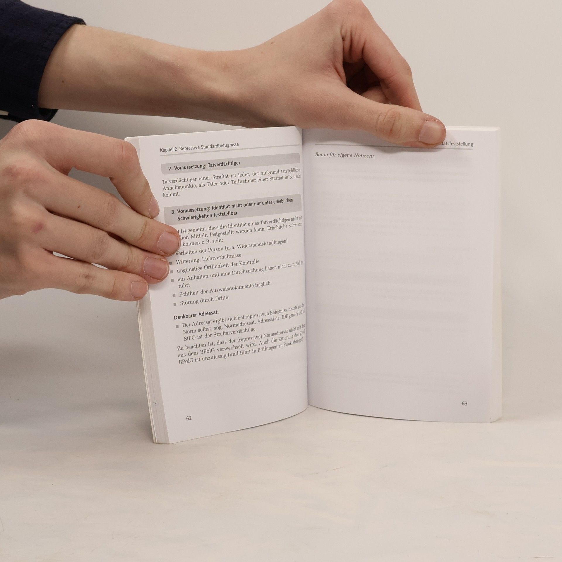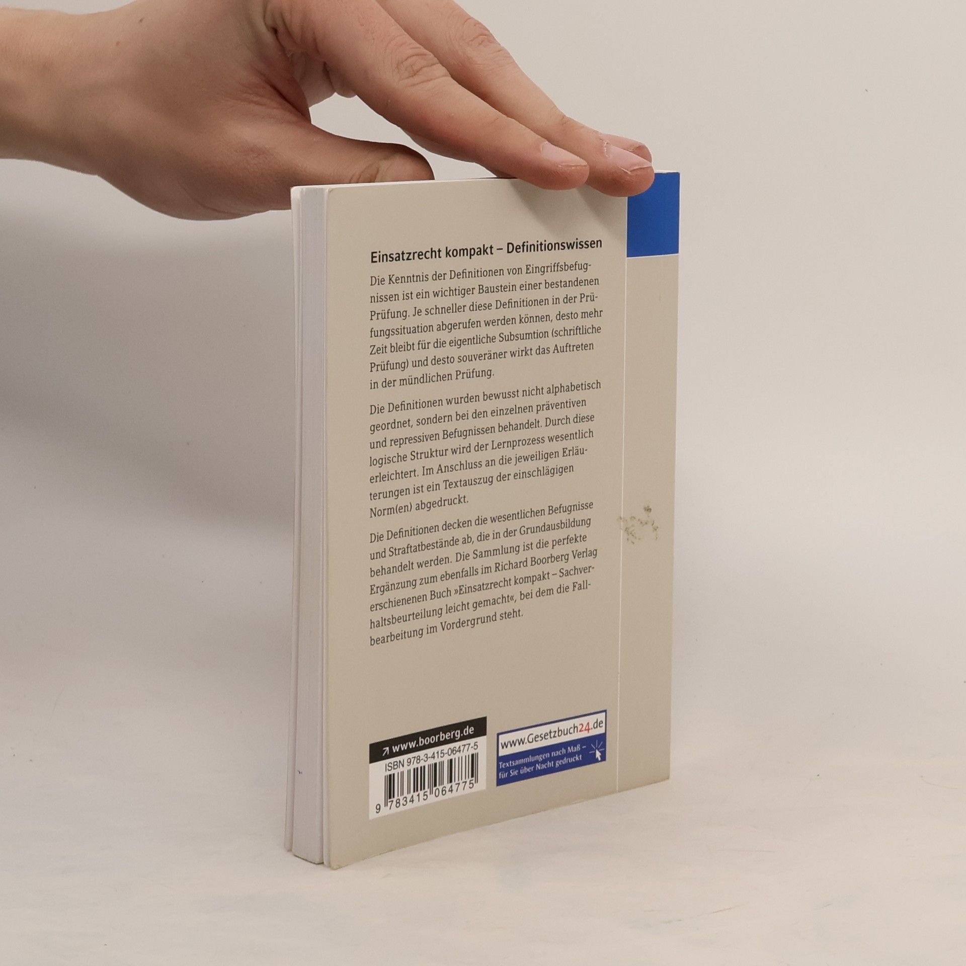 Der Prüfungshelfer Die Definitionensammlung unterstützt Polizeimeisteranwärterinnen und -anwärtern des mittleren Polizeivollzugsdienstes der Bundespolizei (BPOL) bei der erfolgreichen Absolvierung der Zwischenprüfung im Fach Einsatzrecht am Ende der Grundausbildung. Die Kenntnis der Definitionen von Eingriffsbefugnissen und Tatbestandsmerkmalen des Strafrechts ist entscheidend für das Bestehen der Prüfung. Vor der Subsumtion des Prüfungssachverhalts müssen die relevanten Eingriffsbefugnisse und Tatbestandsmerkmale definiert werden. Ein schneller Abruf dieser Definitionen in der Prüfungssituation ermöglicht mehr Zeit für die Subsumtion und sorgt für ein souveränes Auftreten in der mündlichen Prüfung. Die Definitionen sind nicht alphabetisch, sondern nach präventiven und repressiven Befugnissen sowie Straftaten geordnet, was den Lernprozess erleichtert. Nach den Erläuterungen folgt ein Textauszug der relevanten Normen. Die Sammlung deckt die wesentlichen Befugnisse und Straftatbestände ab, die in der Grundausbildung behandelt werden und ergänzt das Buch „Einsatzrecht kompakt – Sachverhaltsbeurteilung leicht gemacht“. Zudem bietet die Sammlung Platz für persönliche Notizen und zusätzliche Informationen. Das kompakte Format ermöglicht eine einfache Mitnahme in der Tasche, ideal zur Vorbereitung auf die Prüfungen. Die Autoren, Patrick Lerm und Dominik Lambiase, sind Polizeioberkommissar und Dozenten am Bundespolizeiaus- und -fortb