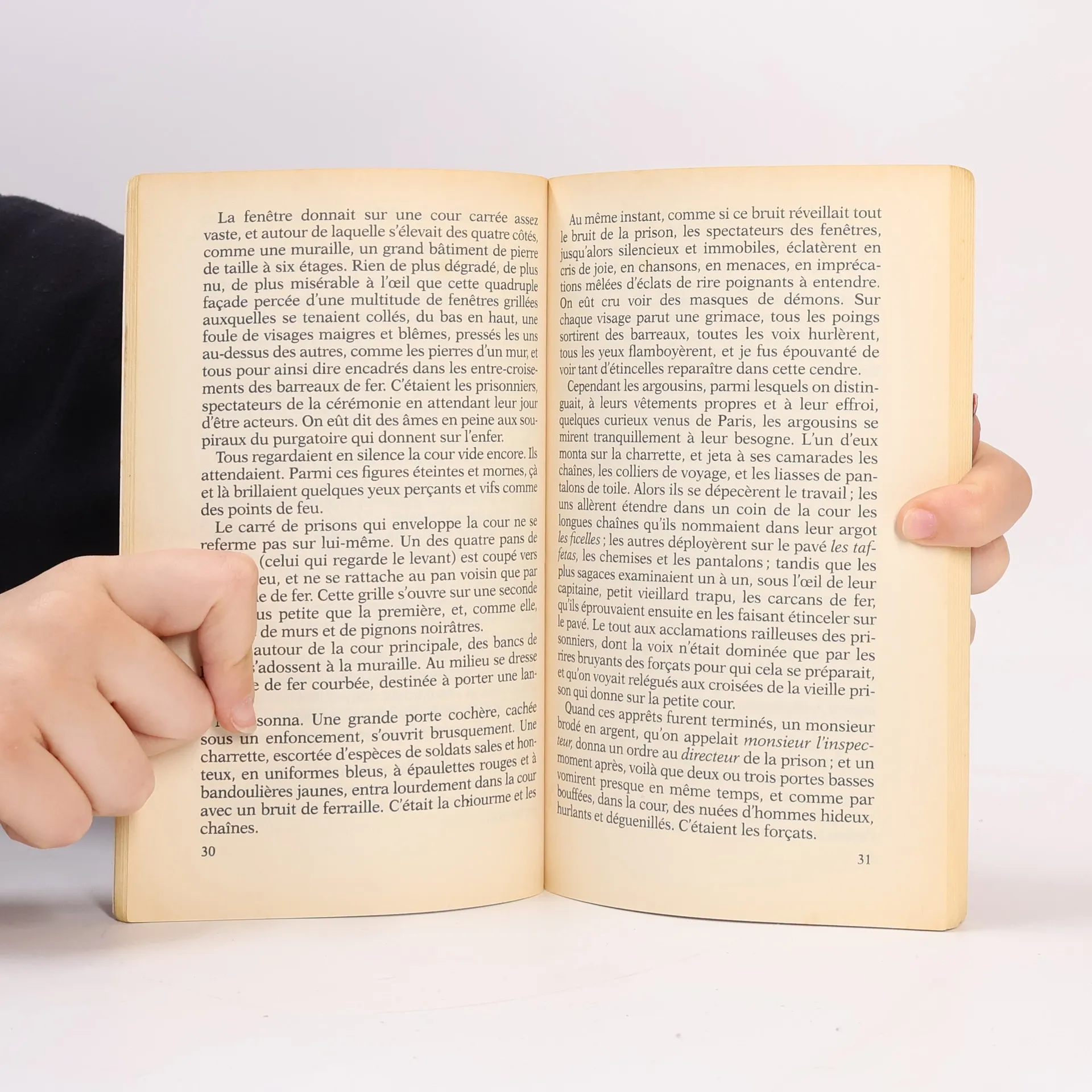 Tout à coup, l'un des valets m'a enlevé ma veste, et l'autre a pris mes deux mains qui pendaient, les a ramenées derrière mon dos, et j'ai senti les nœuds d'une corde se rouler lentement autour de mes poignets rapprochés. En même temps, l'autre détachait ma cravate. Ma chemise de batiste, seul lambeau qui me restât du moi d'autrefois, l'a fait en quelque sorte hésiter un moment : puis il s'est mis à en couper le col. A cette précaution horrible, au saisissement de l'acier qui touchait mon cou, mes coudes ont tressailli, et j'ai laissé échapper un rugissement étouffé. La main de l'exécuteur a tremblé. - Monsieur, m'a-t-il dit, pardon! Est-ce que je vous ai fait mal? Ces bourreaux sont des hommes très doux.