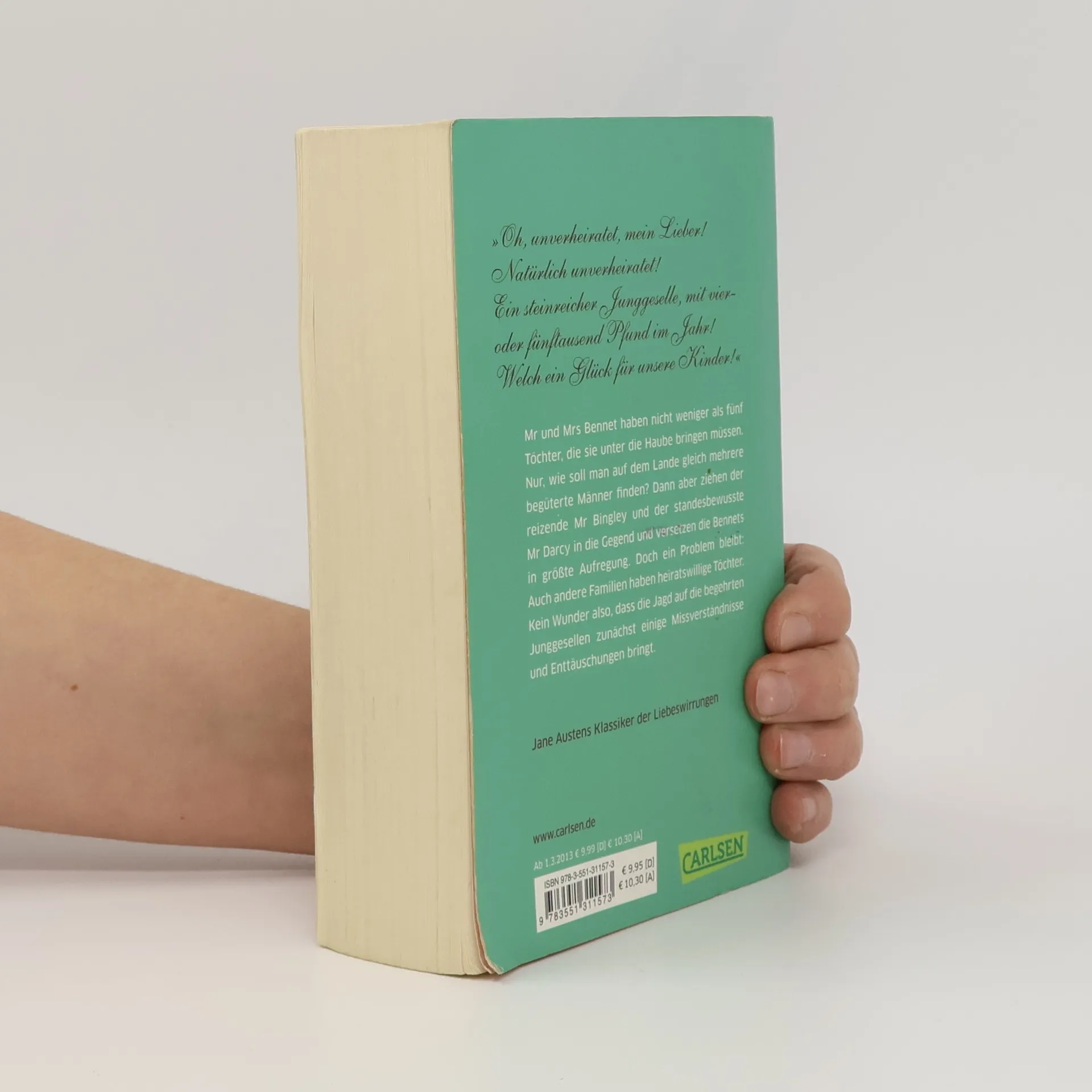Mr und Mrs Bennet haben nicht weniger als fünf Töchter, die sie unter die Haube bringen müssen. Nur, wie soll man auf dem Lande gleich mehrere gut begüterte Männer finden? Dann aber ziehen der reizende Mr Bingley und der standesbewusste Mr Darcy in die Gegend und versetzen die Bennets in größte Aufregung. Doch ein Problem bleibt: Auch andere Familien haben heiratswillige Töchter. Kein Wunder also, dass die Jagd auf die begehrten Junggesellen zunächst einige Missverständnisse und Enttäuschungen bringt. Jane Austens Klassiker der Liebeswirrungen
