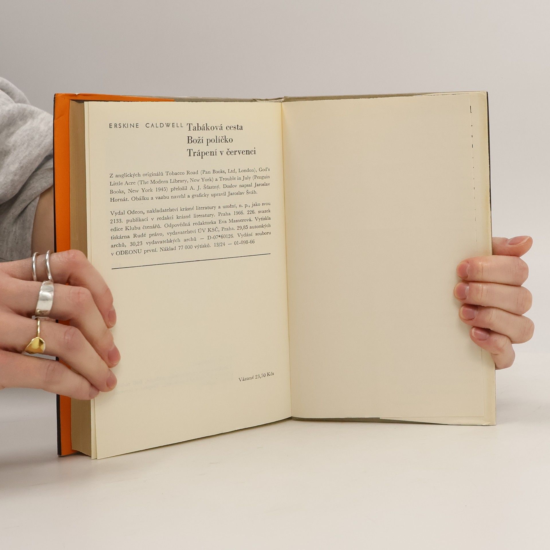 Tři romány (nevycházející v češtině poprvé) výrazného vypravěče amerického Jihu, který v letech třicátých patřil mezi průbojnou mladou generaci, představovanou jmény E. Hemingway, W. Faulkner, J. Dos Passos, J. Steinbeck. Zatímco v prvních dvou líčí se svět bílých, svět zemědělských chudáků amerického Jihu, ve třetím jde o svět černých, o jižanskou rasovou otázku. Trojice nejsilnějších próz.