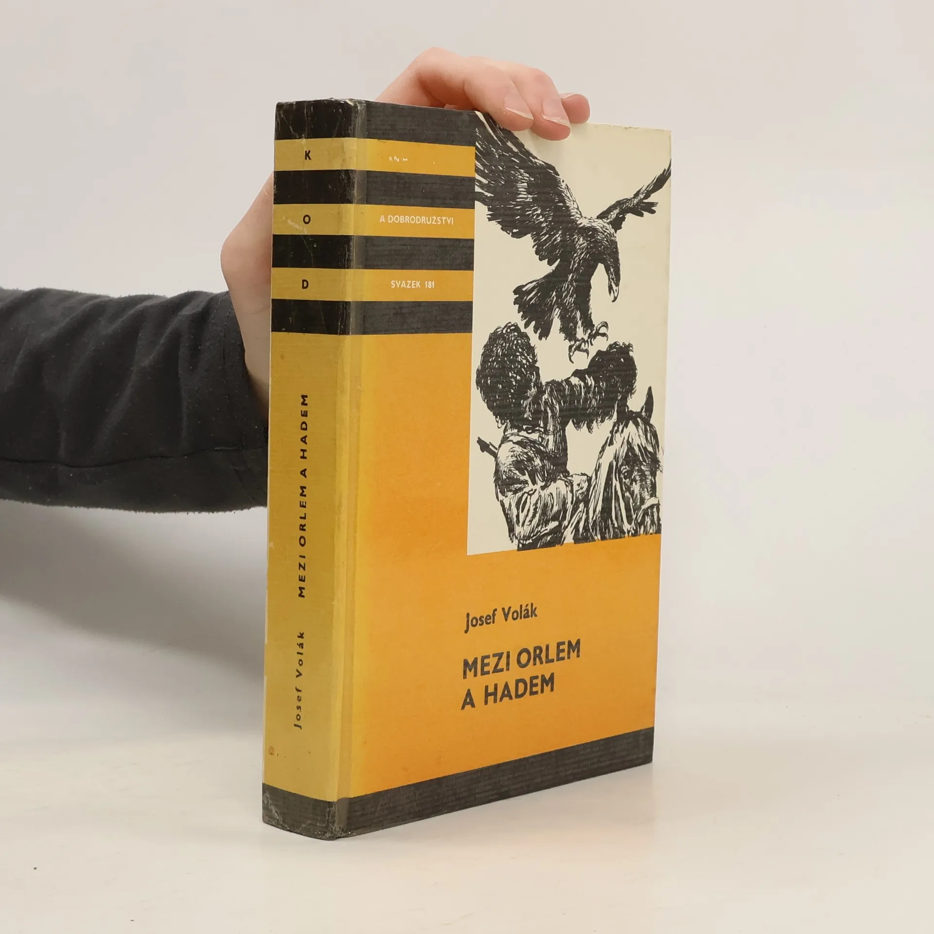 Mezi orlem a hadem je dobrodružný román pro mládež od českého spisovatele Josefa Voláka. Autor v něm spojil své dvě již dříve vydané knihy Divokým Alajem (1985) a Tajemství Uzun-Guru (1988). Román líčí příběhy dvou mladých přátel, Kirgize Zachira a Čecha Petra, kteří o prázdninách cestují s přírodovědeckou karavanou nejprve středoasijským pohořím Alaj a posléze západním Ťan-šanem. Tato hlavní dějová linie je doplněna řadou napínavých příběhů o vyznavačích ďábla jezídech nebo o bojích sovětských pohraničníků s protisovětskými horskými bandity (basmači) ve 20. letech. Tyto příběhy si vyprávějí členové výpravy v době odpočinku. Petr si klade za cíl vyfotografovat, případně chytit, vzácného motýla jasoně Parnassius charltonius v jeho přirozeném vysokohorském prostředí a napsat o něm odborný článek. Ve snaze splnit svůj záměr se vydá sám do hor a zabloudí. Prožije pak mnoho nebezpečných příhod: zažije zemětřesení a málem se utopí v horském potoce, ze kterého jej zachrání dívka Nazira, do které se zamiluje. Střetne se s medvědem a pomůže Naziře zachránit jejího dědečka, který se při zemětřesení zraní. Objeví také starou opuštěnou skrýš basmačů. Nazira pak Zachira a Petra doprovází na další cestě, na které se všichni seznámí se snahou sovětské vlády chránit vzácná zvířata, například orly nebo sněžné levharty.