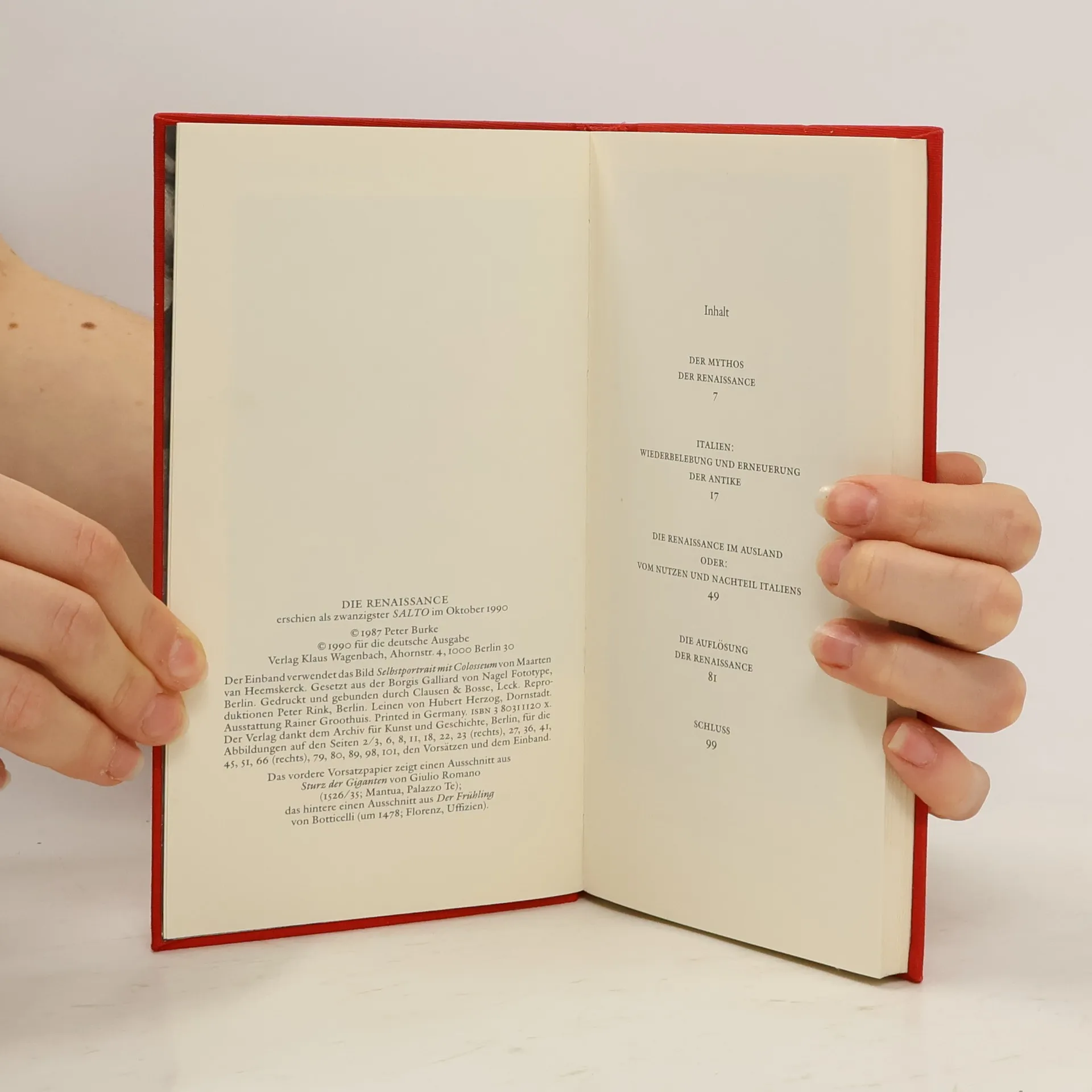 Burke beginnt mit der Kritik am Mythos des Individuums, des "freien Menschen" der Renaissance, so wie ihn das neunzehnte Jahrhundert formuliert hatte. Dieser Mensch der Renaissance war aber nicht nur nach wie vor eingebunden in Zunft und Religion, sondern er war auch der Antike zugleich nah und fern - nah, weil er sich den Alten verbunden fühlte, fern, weil er im Kampf gegen die "Barbarei des Mittelalters" eben die Distanz zwischen sich und der Antike erfuhr, die für das Mittelalter selbst, das sich als unmittelbar der Alten Welt nachfolgend empfand, nicht existierte. Am Ende der Renaissance wurden die Alten verehrt, weil sie als Vorbilder der Lebensführung galten - folgte man ihnen, so deswegen, weil sie verläßliche Führer in eine ungewisse Zukunft schienen. Zwischen der Wiederbelebung des "Anderen" und den Vertrauen in eine "Lebensweisung" liegen die drei Jahrhunderte der Renaissance, ohne die Europa nicht denkbar ist.§