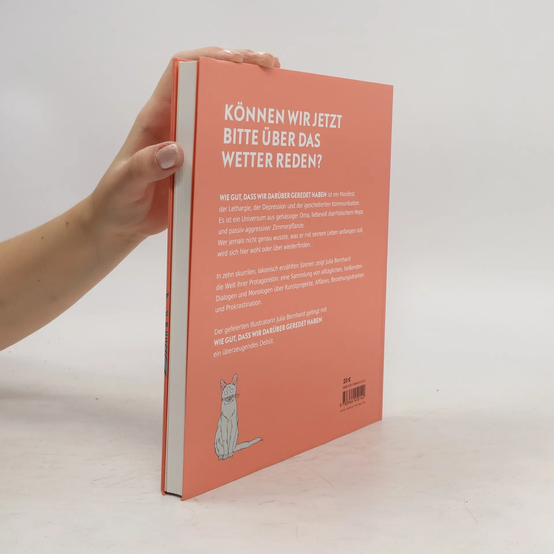 „Wie gut, dass wir darüber geredet haben“ ist ein Manifest der Lethargie, der Depression und der gescheiterten Kommunikation. Es ist ein Universum aus gehässiger Oma, liebevoll diarrhöischem Mops und passiv-aggressiver Zimmerpflanze. Wer jemals nicht genau wusste, was er mit seinem Leben anfangen soll, wird sich hier wohl oder übel wiederfinden. In zehn skurrilen, lakonisch erzählten Szenen zeigt Julia Bernhard die Welt ihrer Protagonistin: eine Sammlung von alltäglichen, beißenden Dialogen und Monologen über Kunstprojekte, Affären, Beziehungsdramen und Prokrastination. Der gefeierten Illustratorin Julia Bernhard gelingt mit „Wie gut, dass wir darüber geredet haben“ ein überzeugendes Debüt.