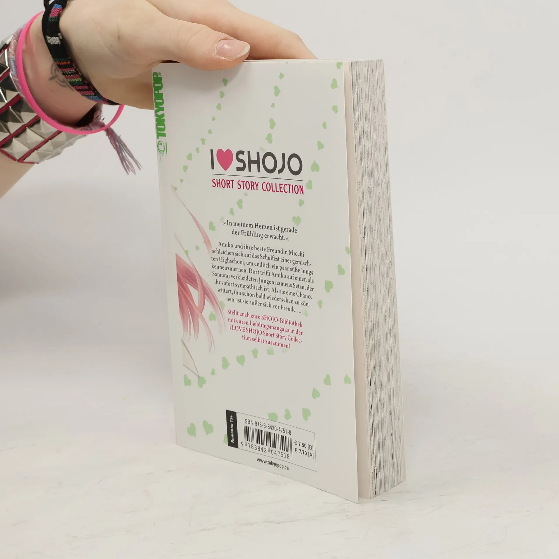 Amiko und ihre beste Freundin Micchi schleichen sich auf das Schulfest einer gemischten Highschool, um endlich ein paar süße Jungs kennenzulernen. Dort trifft Amiko auf einen als Samurai verkleideten Jungen namens Setsu, der ihr sofort sympathisch ist. Als sie eine Chance wittert, ihn schon bald wiedersehen zu können, ist sie außer sich vor Freude … Diese und vier weitere liebenswerte Kurzgeschichten über die erste Liebe in einem Band! Stellt euch mit der I LOVE SHOJO Short Story Collection eure eigene Bibliothek mit euren Lieblingsmangaka zusammen!