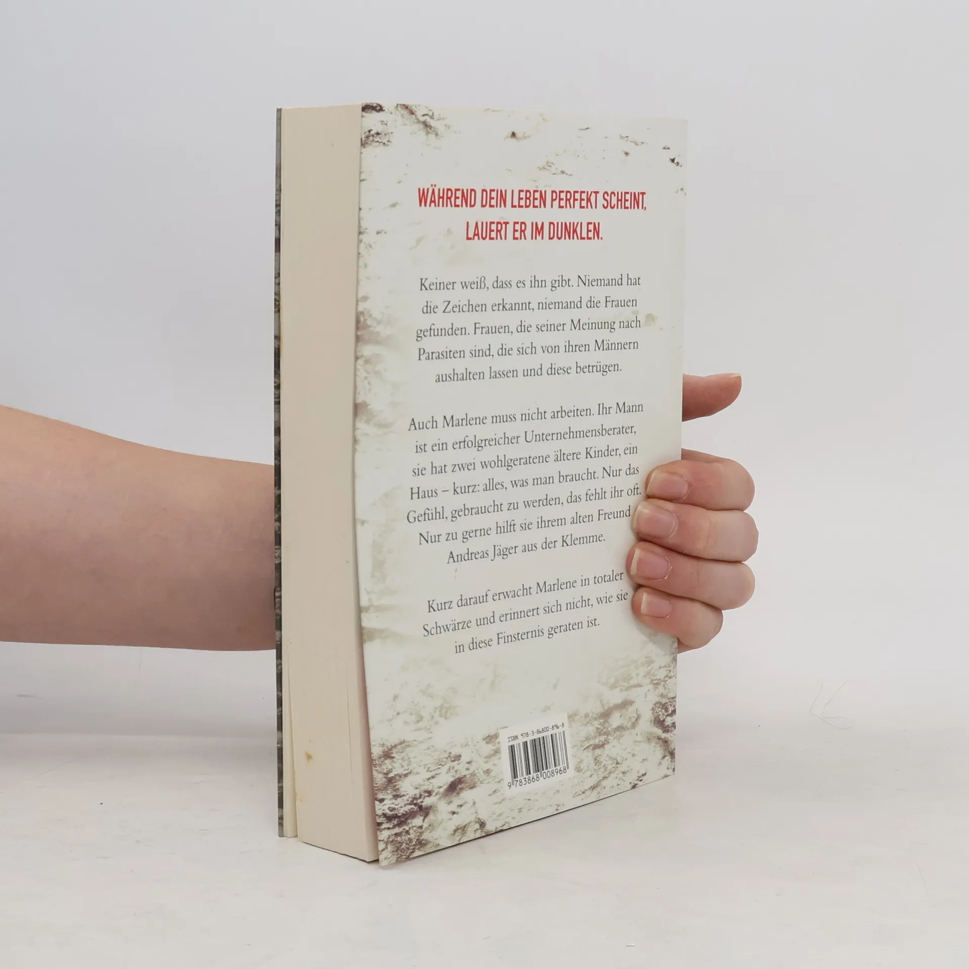 Dein Leben ist perfekt. Doch er lauert schon im Dunklen. Keiner weiß, dass es ihn gibt. Niemand hat die Zeichen erkannt, niemand die Frauen gefunden. Frauen, die seiner Meinung nach Parasiten sind. Die sich von ihren Männern aushalten lassen und diese betrügen. Auch Marlene muss nicht arbeiten. Ihr Mann ist erfolgreicher Unternehmensberater, sie hat zwei wohlgeratene Kinder, ein Haus – kurz: alles, was man braucht. Nur das Gefühl, gebraucht zu werden, fehlt ihr oft. Nur zu gerne hilft Marlene daher einem alten Freund aus der Klemme. Kurz darauf erwacht sie in totaler Finsternis ... «Petra HamMesfahrschafft Spannung mit Andeutungen, mit raffinierter Erzählweise und fesselnden Geschichten.» (Stern)