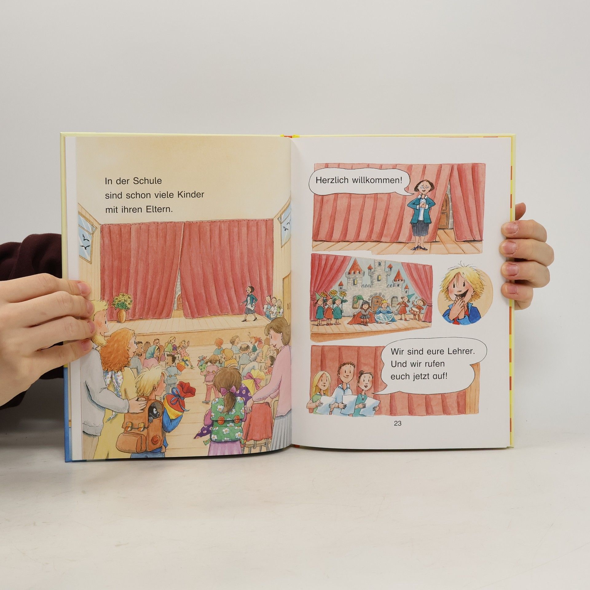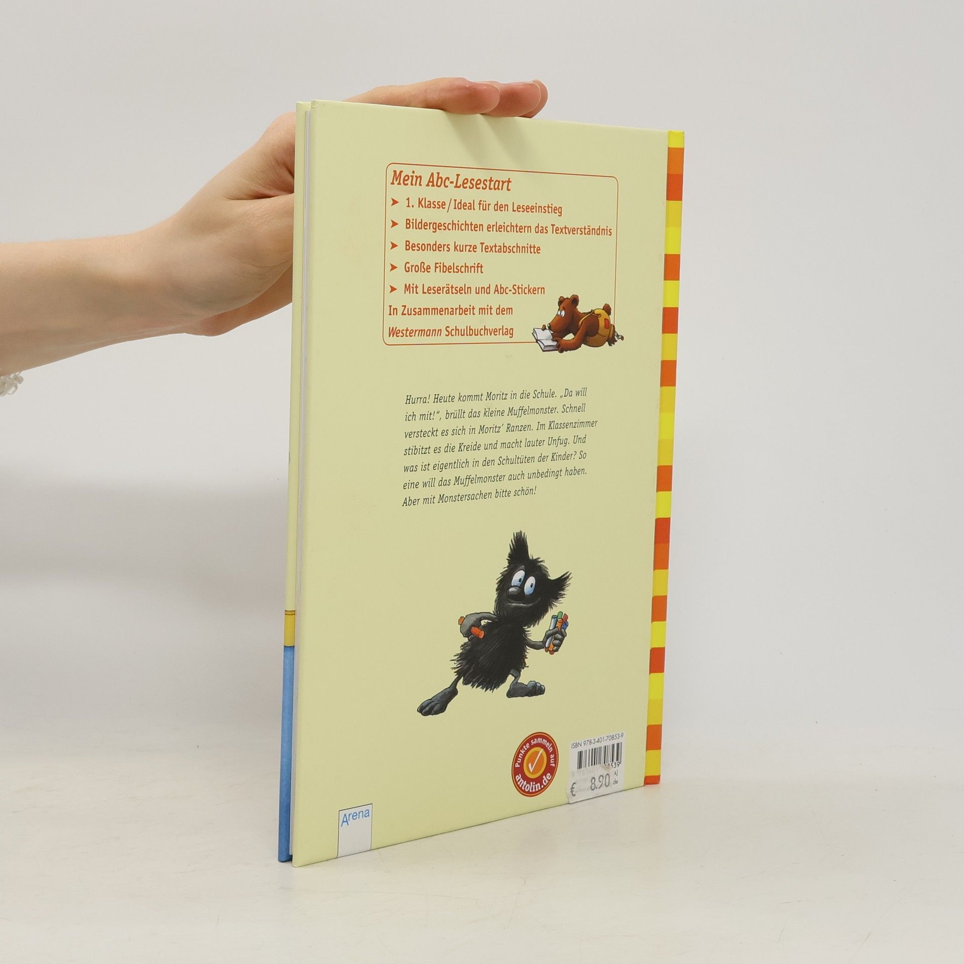 Hurra! Heute kommt Moritz in die Schule. „Da will ich mit!“, brüllt das kleine Muffelmonster. Schnell versteckt es sich in Moritz` Ranzen. Im Klassenzimmer stibitzt es die Kreide und macht lauter Unfug. Und was ist eigentlich in den Schultüten der Kinder? So eine will das Muffelmonster auch unbedingt haben. Aber mit Monstersachen bitte schön!