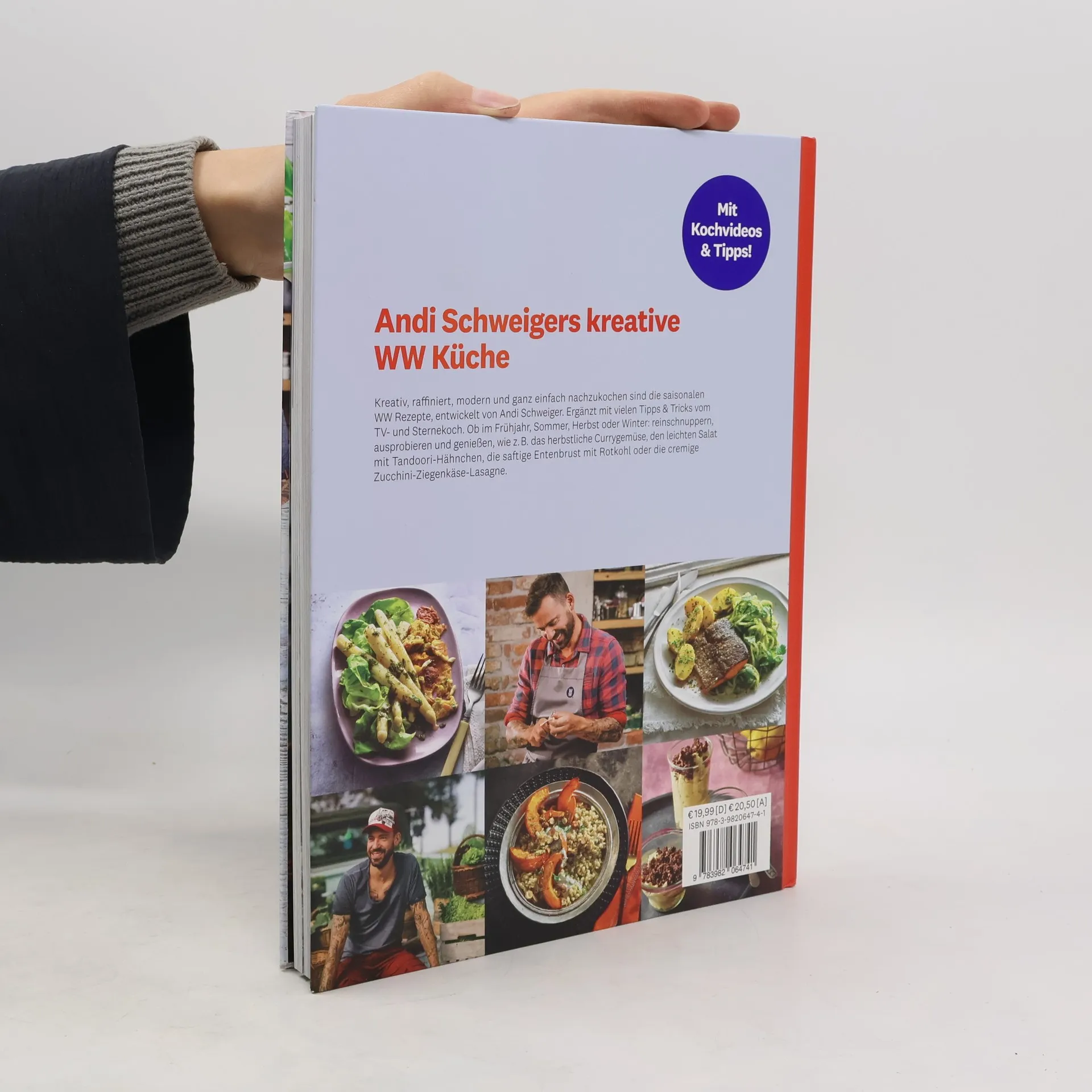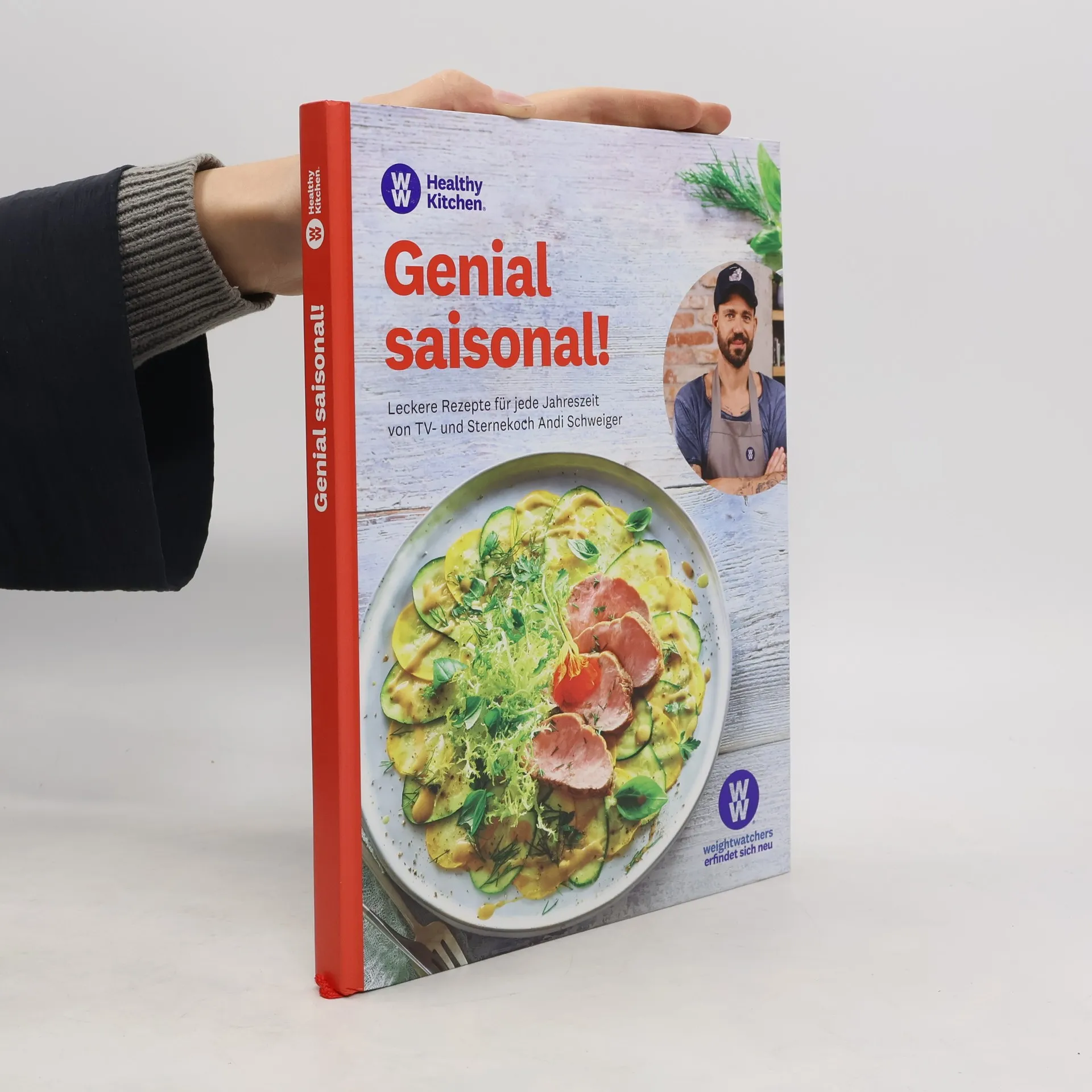Tipps vom Sternekoch: Kreative Rezeptideen für jede Jahreszeit. Raffiniert, lecker und einfach nachzukochen: Sternekoch Andi Schweiger hat zusammen mit WW saisonale Gerichte kreiert, die Lust auf frische und ausgefallene Küche machen! Jede Jahreszeit bringt besondere Anlässe, Zutaten und Leckereien mit sich. In diesem Kochbuch finden Sie das Beste: frische Kräuter im Frühling, buntes Gemüse und Fisch im Sommer, herbstliche Rezepte mit Kürbis und Honig sowie Wohlfühlküche für den Winter. Zu allen Zutaten gibt es Informationen zu Warenkunde und Produktqualität, denn Andi Schweiger legt großen Wert auf die Herkunft der Lebensmittel. Dieses Kochbuch begleitet Sie durch das ganze Jahr mit Tipps für gesunde Ernährung und einen ausgewogenen Lebensstil. Regionale und saisonale Rezepte mit dem gewissen Etwas: WW Gerichte „made by Andi Schweiger“. Lernen Sie vom Kochprofi und entdecken Sie Tricks für mehr Spaß in der Küche. Gesund, frisch und ausgewogen – Kochen mit Andi Schweiger bedeutet, Freude am Experimentieren und neue Geschmackserlebnisse zu entdecken. Die vielfältigen Rezepte sind auf das Weight Watchers Smart Points System abgestimmt. Egal, ob Sie abnehmen oder etwas für Ihre Gesundheit tun möchten – mit den WW Rezepten von Andi Schweiger kommt gute Laune auf den Teller!
