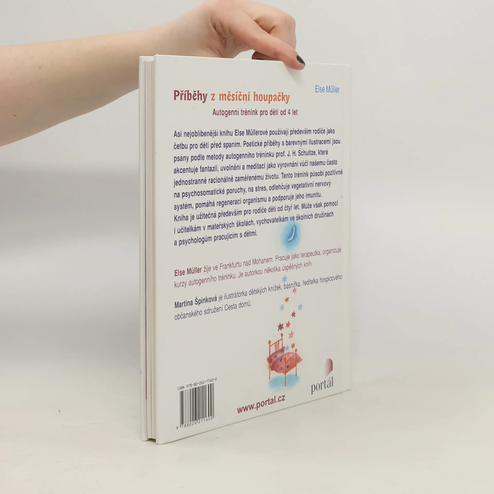 Asi nejoblíbenější knihu Else Müllerové používají především rodiče jako četbu pro děti před spaním. Poetické příběhy s barevnými ilustracemi jsou psány podle metody autogenního tréninku prof. J. H. Schultze, která akcentuje fantazii, uvolnění a meditaci jako vyrovnání vůči našemu často jednostranně racionálně zaměřenému životu. Tento trénink působí pozitivně na psychosomatické poruchy, na stres, odlehčuje vegetativní nerovový systém, pomáhá regeneraci organismu a podporuje jeho imunitu. Kniha je užitečná především pro rodiče dětí od čtyř let. Může však pomoci i učitelkám v mateřských školách, vychovatelkám ve školních družinách a psychologům pracujícím s dětmi. Else Müller žije ve Frankfurtu nad Mohanem. Pracuje jako terapeutka, organizuje kurzy autogenního tréninku. Je autorkou několika úspěšných knih. Martina Špinková je ilustrátorka dětských knížek, básnířka, ředitelka hospicového občanského sdružení Cesta domů.