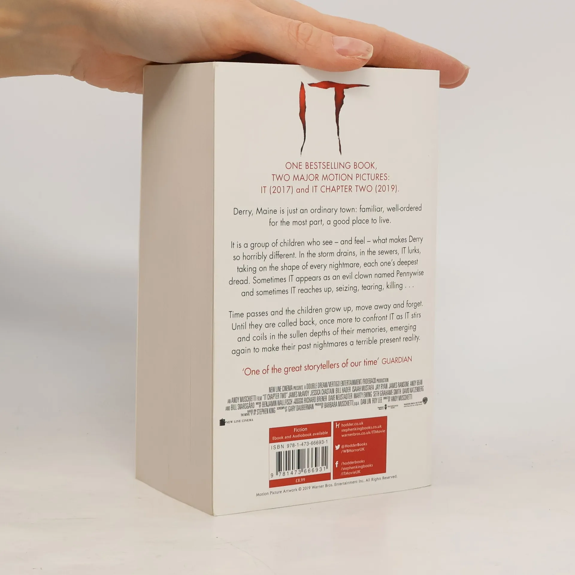 Derry, Maine is just an ordinary town : familiar, well- ordered for the most part, a good place to live. It is a group of children who see - and feel - what makes Derry so horribly different. In the storm drains, in the sewers, IT lurks, taking on the shape of every nightmare, each one's deepest dread. Sometimes IT appears as an evil clown named Pennywise and sometimes IT reaches up, seizing, tearing, killing... Time passes and the children grow up, move away and forget. Until they are called back, once more to confront IT as IT stirs and coils in the sullen depths of their memories, emerging again to make their past nightmares a terrible present reality.