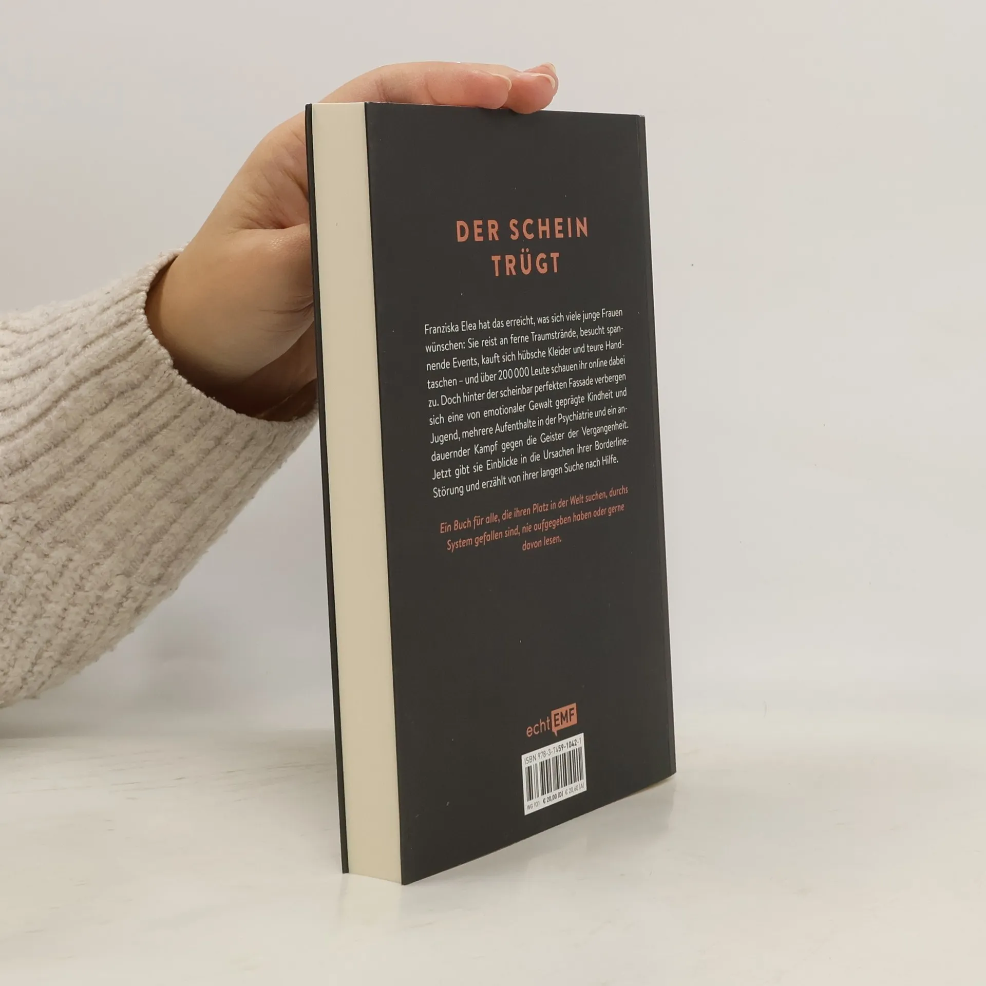 „Ich sterbe und keiner sieht es.“ Franzi lebt seit ihrer Kindheit mit Angststörungen, später wurde bei ihr Borderline diagnostiziert. In ihrem Buch teilt sie nicht nur ihre persönliche Geschichte, sondern bricht auch das Stigma psychischer Erkrankungen und deckt Missstände im psychiatrischen System auf. Ihr Instagram-Account zeigt eine schöne, junge Frau in ansprechenden Outfits, in glücklichen Beziehungen und in traumhaften Landschaften – über 200.000 Follower verfolgen ihr Leben. Doch hinter der perfekten Fassade verbirgt sich eine Kindheit voller emotionaler Vernachlässigung, mehrere stationäre Therapien und der Wunsch, aus einem perspektivlosen Umfeld zu entkommen, in dem sie oft als Außenseiterin galt. Franzi gewährt Einblicke in die Ursachen ihrer Erkrankungen, beschreibt ihre Erfahrungen in der Psychiatrie und ihre lange Suche nach echter Hilfe, die sie schließlich zur erfolgreichen Influencerin führte. Ihr Anliegen ist es, über die komplexe Persönlichkeitsstörung Borderline aufzuklären und einen Appell an die Leser*innen zu richten: Psychische Erkrankungen sollten kein Tabu sein, und die Suche nach therapeutischer Unterstützung ist keine Schande. Ein Buch für all jene, die ihren Platz in der Welt suchen oder sich mit ähnlichen Herausforderungen auseinandersetzen.