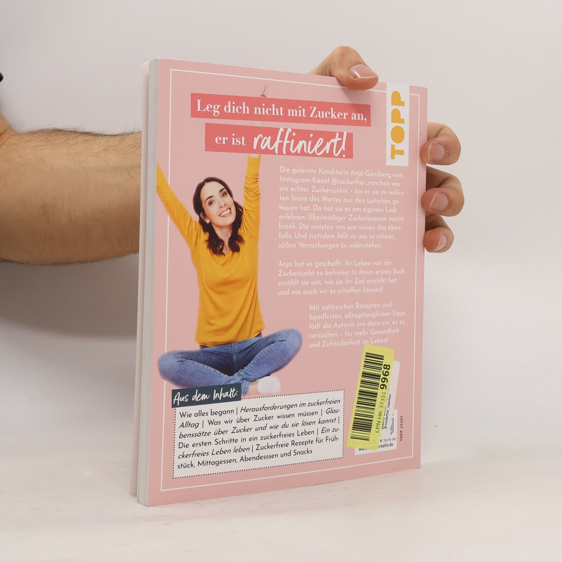 Die gelernte Konditorin Anja Giersberg aka @zuckerfrei_naschen war ein echter Zuckerjunkie - bis es sie im wahrsten Sinne des Wortes aus den Latschen gehauen hat. Da hat sie es am eigenen Leib erfahren: Übermäßiger Zuckerkonsum macht krank. Die meisten von uns wissen das ebenfalls - und trotzdem fällt es uns so schwer, süßen Versuchungen zu widerstehen . Anja hat es mittlerweile geschafft, ihr Leben von der Zuckersucht zu befreien . In ihrem ersten Buch erzählt sie uns, wie sie ihr Ziel erreicht hat und wie auch wir es schaffen können! Mit zahlreichen Rezepten und handfesten, alltagstauglichen Tipps lädt die Autorin uns dazu ein, es zu versuchen - für mehr Gesundheit und Zufriedenheit im Leben!