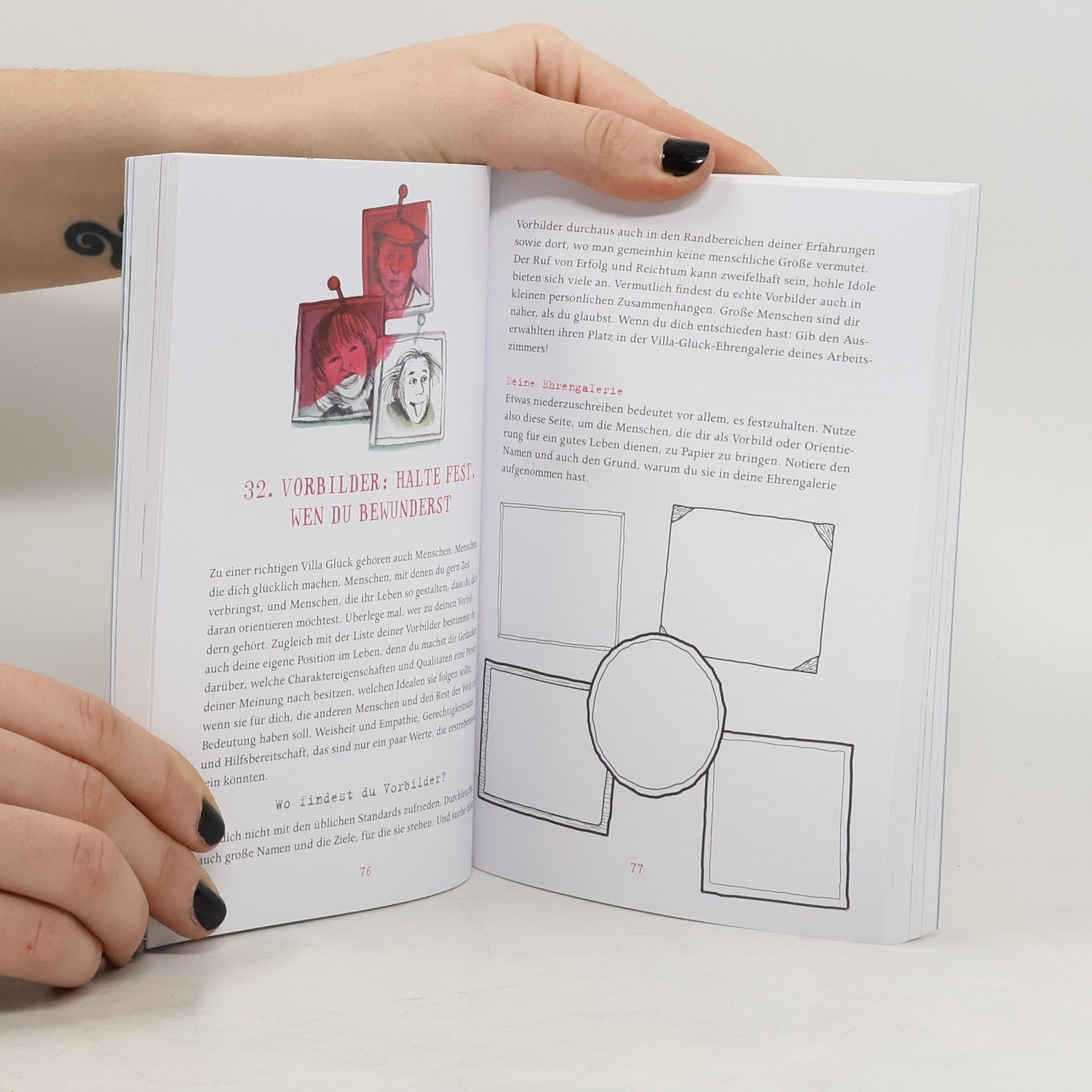 Die Villa Glück gibt es nicht wirklich, sie ist ein Ort in unserem Kopf. Aber jeder kann sich diesen Glücksort selbst erschaffen. Wie das geht, zeigt dieses Buch. Es präsentiert 99 Ideen für kleine Abenteuer, die - angeordnet nach den Zimmern eines Hauses - Glück, Freude und Zufriedenheit bringen: Schwelge auf dem Dachboden in Briefen der Vergangenheit oder blättere in alten Fotoalben. Schreibe im Arbeitszimmer die erste Seite eines Romans. Probiere in der Küche etwas Neues aus und stelle etwa Nudeln selbst her. Reise im Schlafzimmer gedanklich in Länder, in denen du noch nie warst, und lade im Wohnzimmer zu einer eleganten Teeparty.