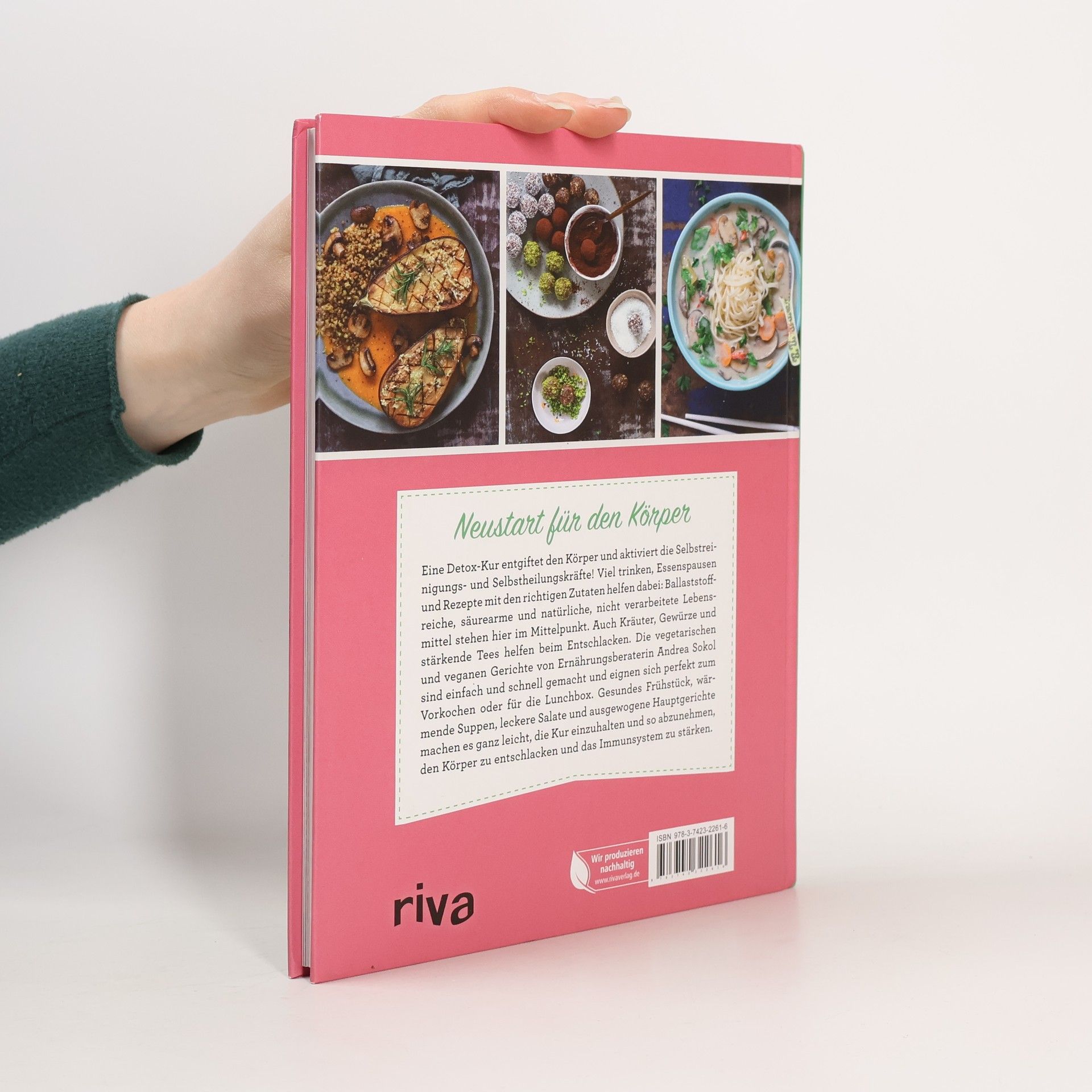 Neustart für den Körper Eine Detox-Kur entgiftet den Körper und aktiviert die Selbstreinigungs- und Selbstheilungskräfte! Viel trinken, Essenspausen und Rezepte mit den richtigen Zutaten helfen dabei: Ballaststoffreiche, säurearme und natürliche, nicht verarbeitete Lebensmittel stehen hier im Mittelpunkt. Auch Kräuter, Gewürze und stärkende Tees helfen beim Entschlacken. Die vegetarischen und veganen Gerichte von Ernährungsberaterin Andrea Sokol sind einfach und schnell gemacht und eignen sich perfekt zum Vorkochen oder für die Lunchbox. Gesundes Frühstück, wärmende Suppen, leckere Salate und ausgewogene Hauptgerichte machen es ganz leicht, die Kur einzuhalten und so abzunehmen, den Körper zu entschlacken und das Immunsystem zu stärken.