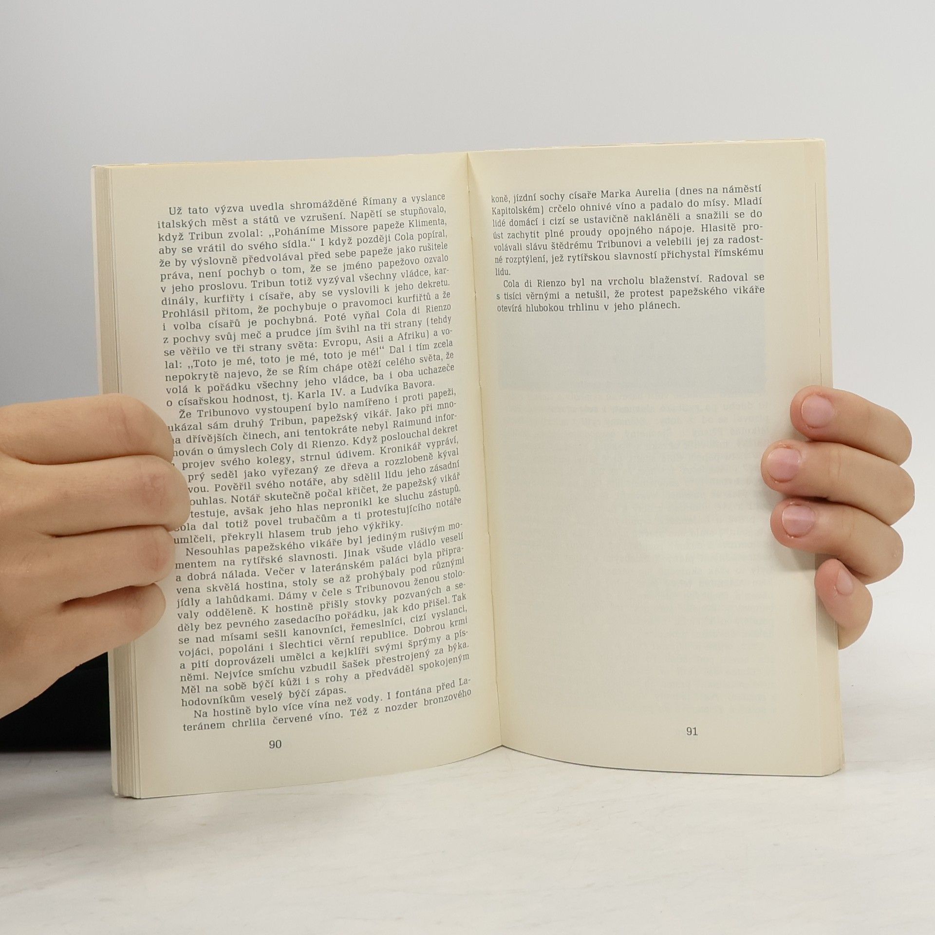 Monografie o typické osobnosti počátků italské renesance, revolucionáři, ideologu a uskutečňovateli republikánského programu. Jeho vlastenectví inspirovaly ideály a podněty antiky. Opíral se o řemeslnické měšťanstvo a lidové vrstvy. Zmocnil se proti šlechtě dvakráte vlády v Římě. Usiloval nejen o sjednocení Itálie, ale i o mravní obrodu církve a celého světa. Pro jeho snahy, v některých aspektech dosud moderní, doba však ještě neuzrála. Proto jeho pokusy - snažil se pro své plány získat i našeho Karla IV. - ztroskotaly a sám bídně zahynul. V druhé části jsou jednak otištěny výňatky z programu, listů, manifestů a výnosů humanisty Nicolly di Lorenzo Gabrini, jednak soudy a ohlasy jeho díla. 1. vydání.