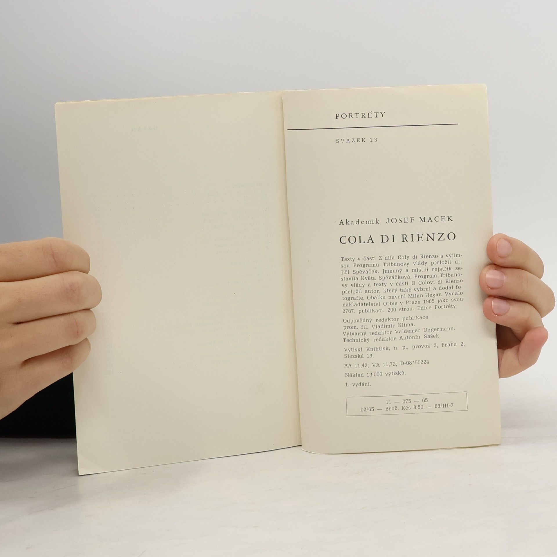Nous avons un total de du titre Portréty. Cola Di Rienzo (1965).