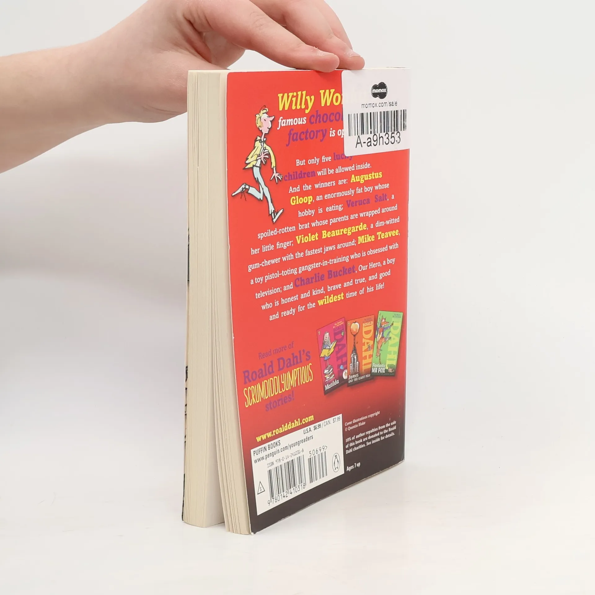 From the author of The BFG and Matilda! Willy Wonka's famous chocolate factory is opening at last! But only five lucky children will be allowed inside. And the winners are: Augustus Gloop, an enormously fat boy whose hobby is eating; Veruca Salt, a spoiled-rotten brat whose parents are wrapped around her little finger; Violet Beauregarde, a dim-witted gum-chewer with the fastest jaws around; Mike Teavee, a toy pistol-toting gangster-in-training who is obsessed with television; and Charlie Bucket, Our Hero, a boy who is honest and kind, brave and true, and good and ready for the wildest time of his life!