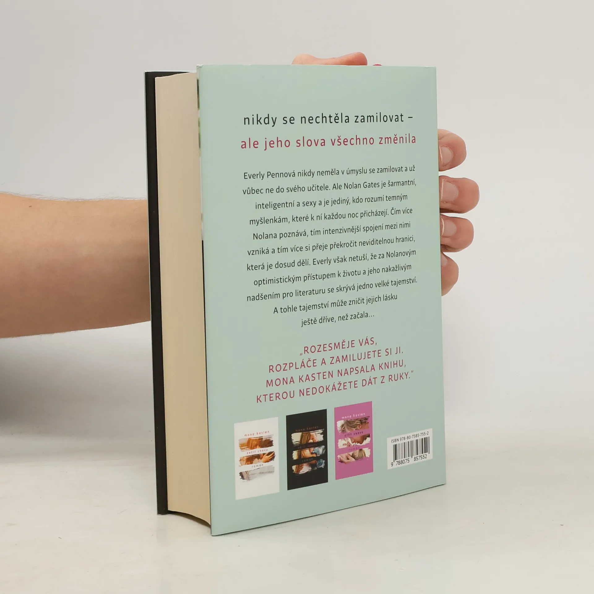 Everly Pennová nevěří na lásku. Celé roky musela přihlížet, jak její matka trpí otcovým násilnickým chováním a jak stále více ztrácí sebe samu. Zážitky z dětství ji natolik traumatizovaly, že se rozhodla nikdy nezamilovat. To se však změní, když potká Nolana Gatese. Nolan je okouzlující, inteligentní a sexy a je to jediný člověk, před nímž Everly může být sama sebou – bez masky, kterou nosí před ostatními. Ale Nolan je její vyučující. Je jedno, jak dobře si rozumí a jak moc ji dokáže rozesmát svým zvláštním humorem. Everly ví, že je pro ni absolutní tabu. A přesto je bezmocná proti pocitům, které v ní vyvolávají jeho slova. Noční rozhovory s ním jsou to jediné, co ji odvádí od temných myšlenek, které ji od dětství pronásledují a noc co noc jí nedovolují usnout. Jen jemu může říci, že vůbec neví, co chce od života, a že studuje jen proto, aby byla její matka šťastná. Čím více času ubíhá, tím intenzivnější spojení mezi nimi je a tím více si Everly přeje překročit neviditelnou hranici, která ji od Nolana odděluje. Ale netuší, že za Nolanovým optimistickým přístupem k životu a nakažlivým nadšením pro literaturu se skrývá jedno tajemství. A tohle tajemství může zničit jejich lásku ještě dříve než začala....